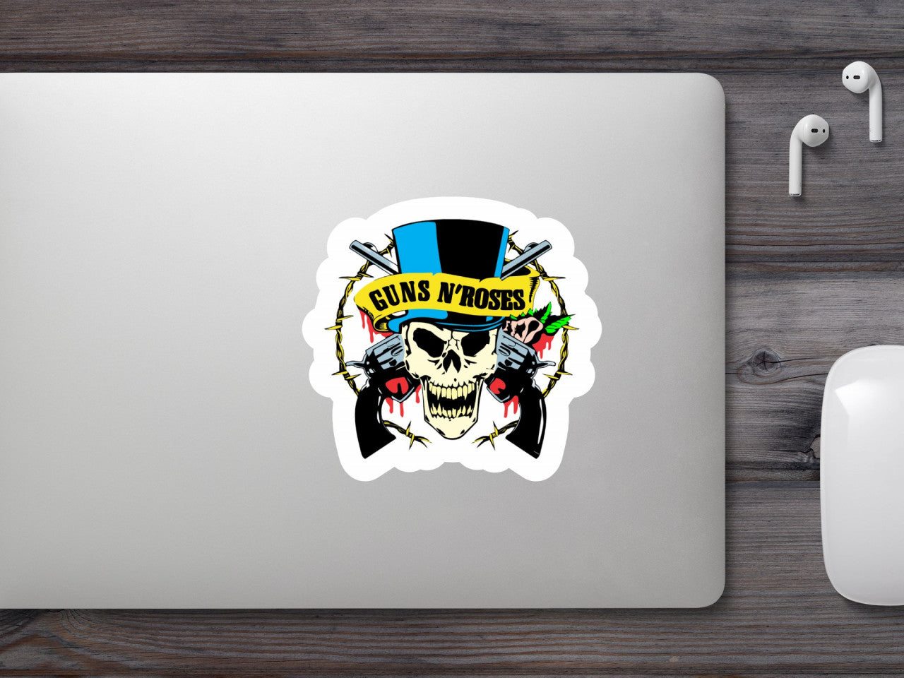 Set 4 bucati, Sticker decorativ, Craniu cu pistoale Guns N' Roses, Rezistent la apa, NO8926, 10 cm, Multicolor