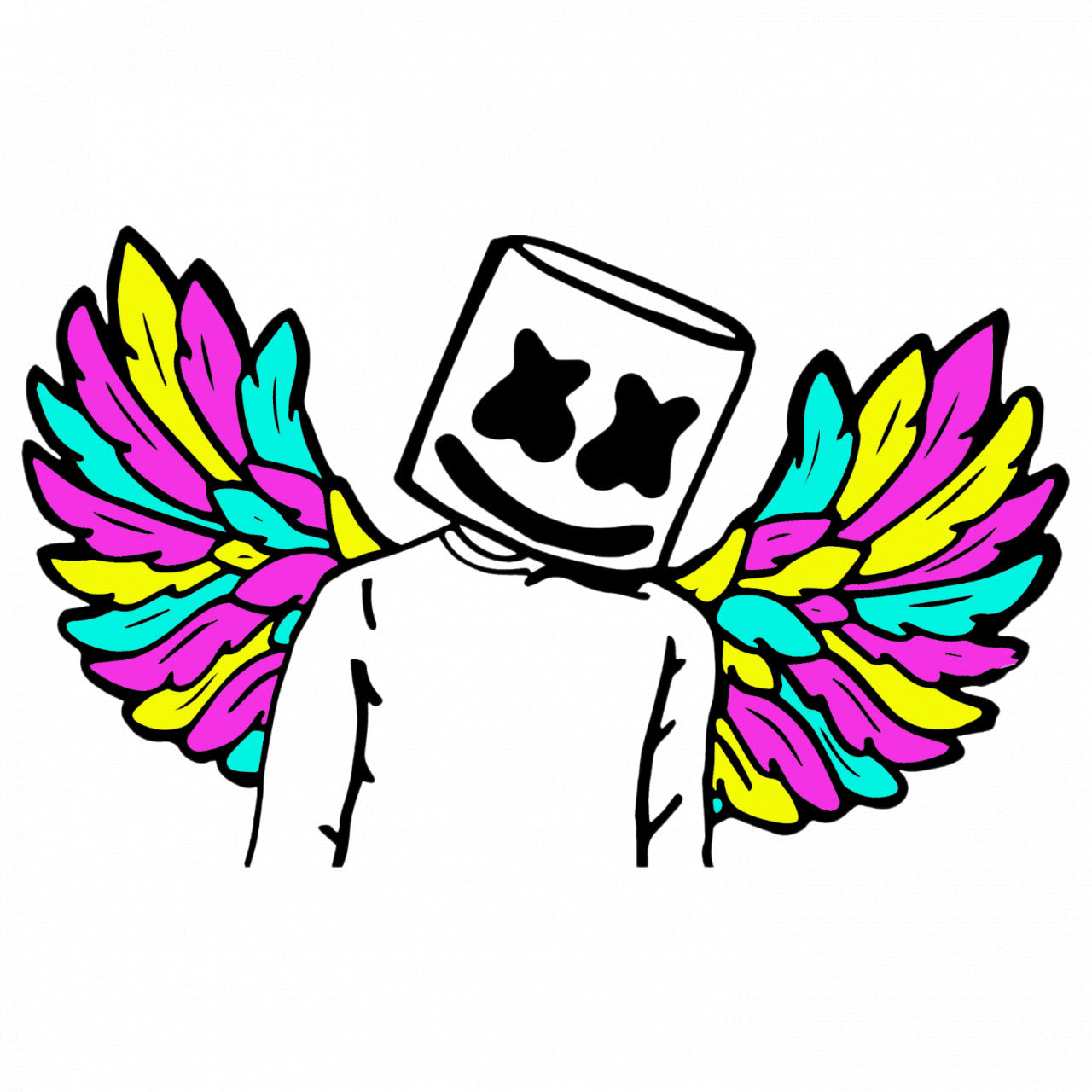Set 4 bucati, Sticker decorativ, Dj Marshmello cu aripi de inger, Rezistent la apa, NO9046, 10 cm, Multicolor