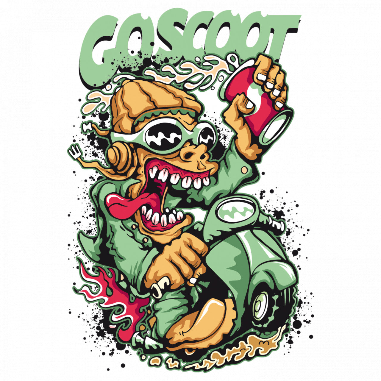 Set 4 bucati, Sticker decorativ, Go Scoot, Rezistent la apa, NO9449, 10 cm, Multicolor
