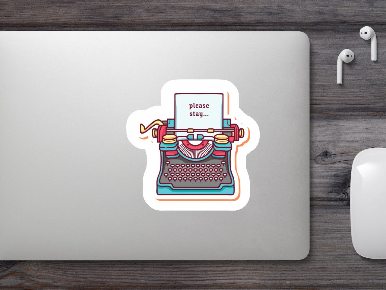 Set 4 bucati, Sticker decorativ, Masina de scris, Rezistent la apa, NO10008, 10 cm, Multicolor