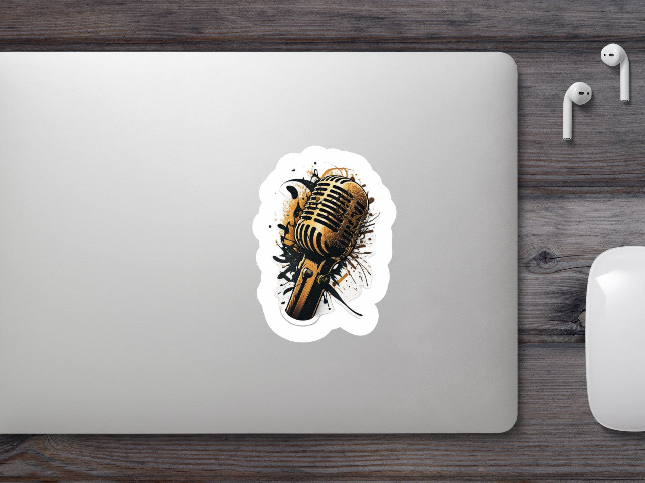 Set 4 bucati, Sticker decorativ, Microfon radio, Rezistent la apa, NO8126, 10 cm, Multicolor