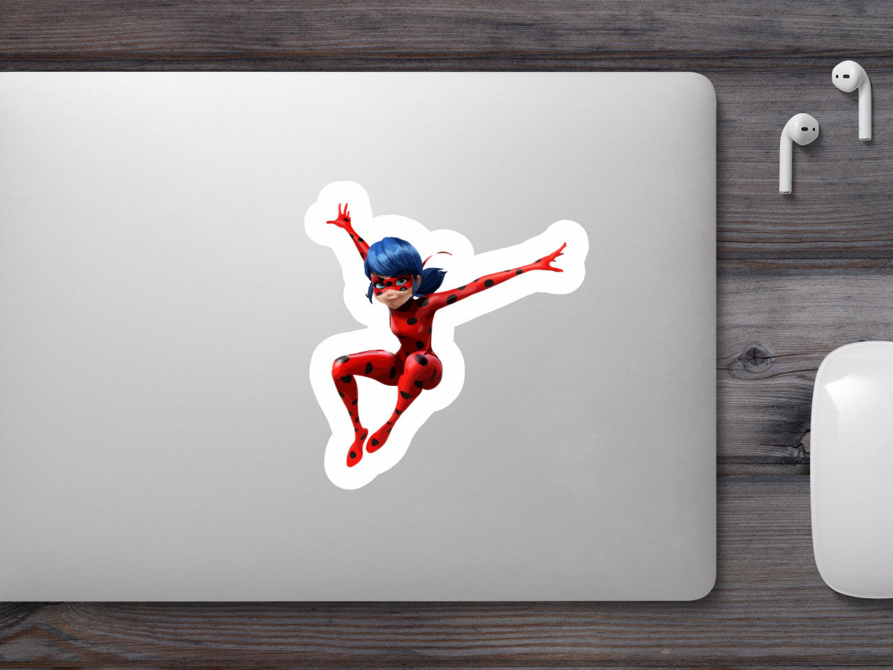Set 4 bucati, Sticker decorativ, Miraculous Ladybug in saritura, Rezistent la apa, NO8165, 10 cm, Multicolor