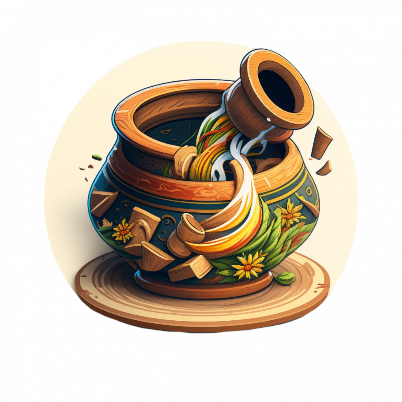 Set 4 bucati, Sticker decorativ, Mojar de lut, Rezistent la apa, NO8175, 10 cm, Multicolor