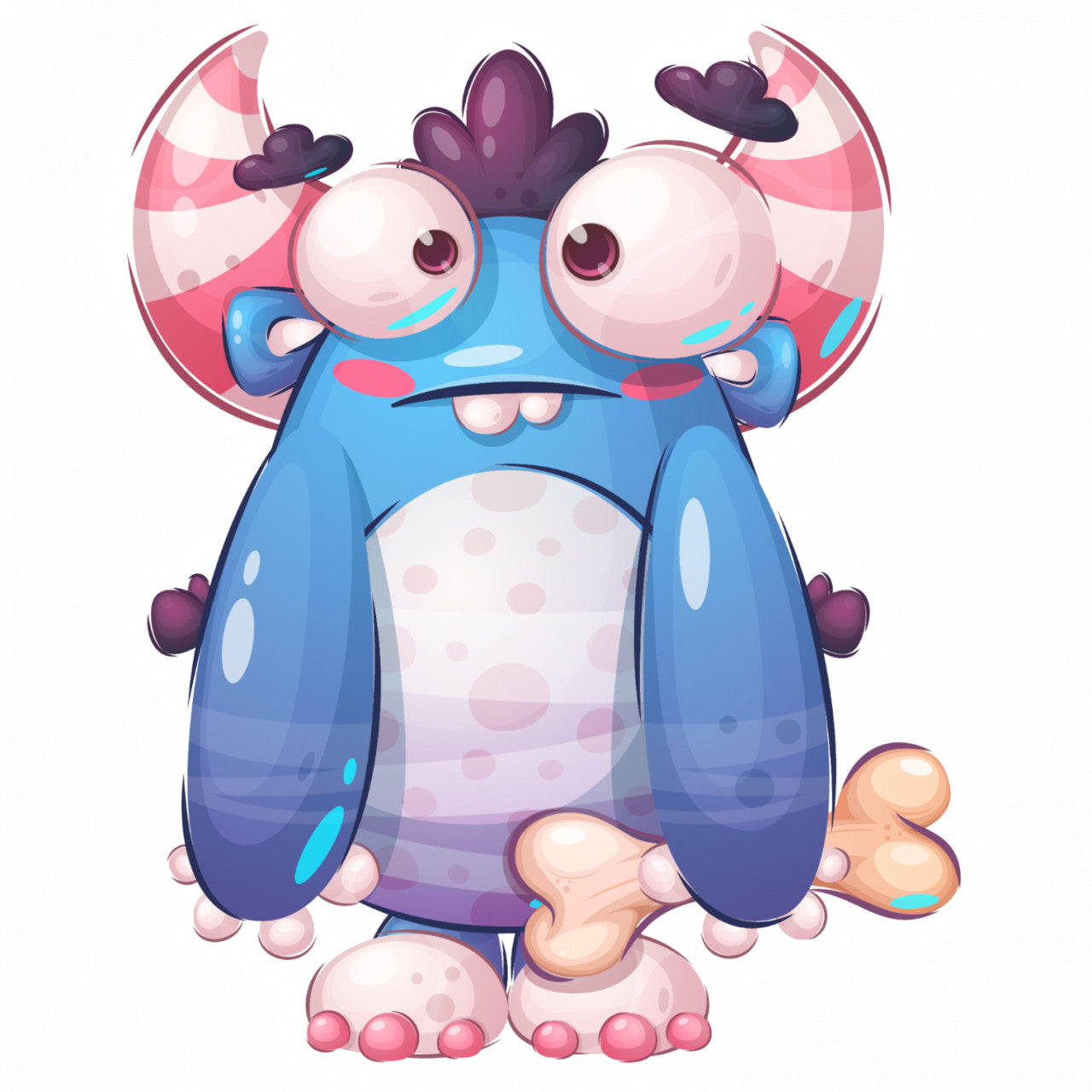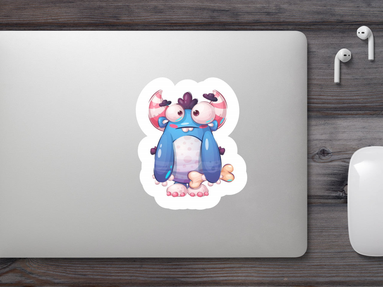 Set 4 bucati, Sticker decorativ, Monstru cu coarne si os, Rezistent la apa, NO8177, 10 cm, Multicolor