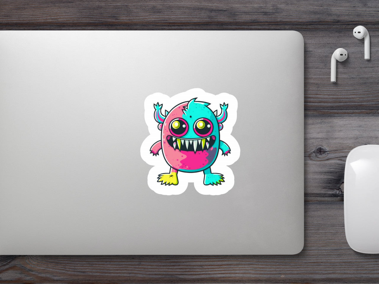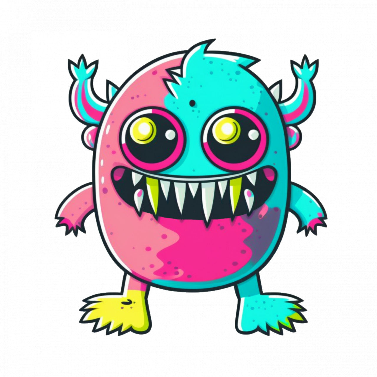Set 4 bucati, Sticker decorativ, Monstrul Dinte de lapte, Rezistent la apa, NO8180, 10 cm, Multicolor