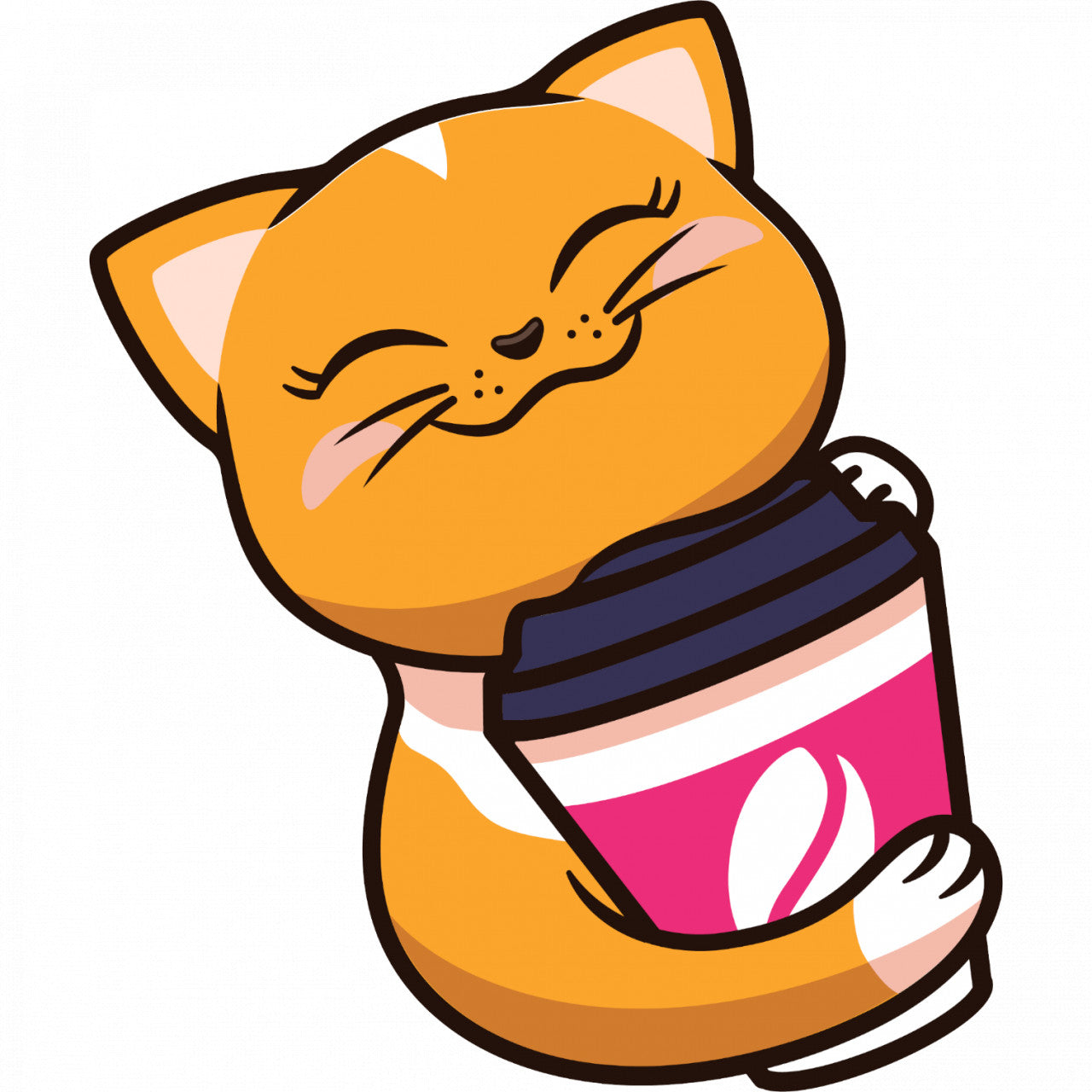 Set 4 bucati, Sticker decorativ, Pisica cu cafea, Rezistent la apa, NO10189, 10 cm, Multicolor