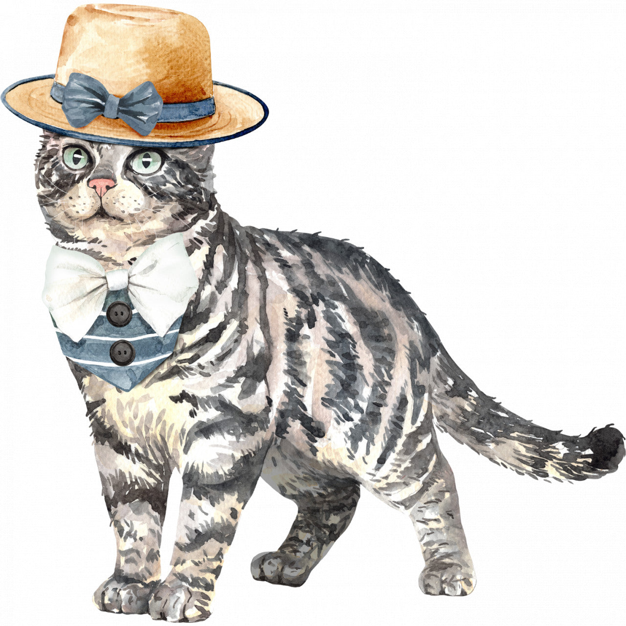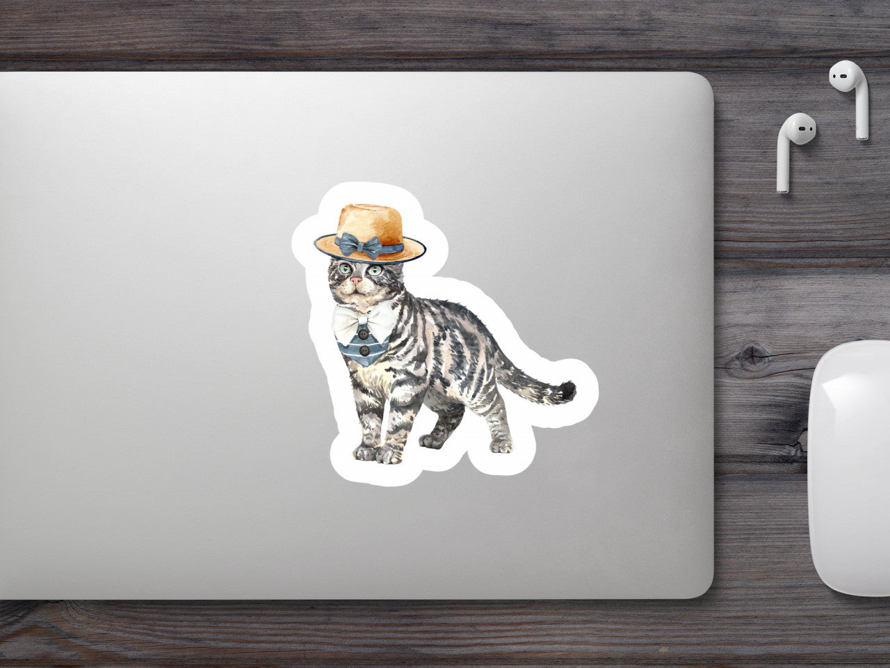 Set 4 bucati, Sticker decorativ, Pisica cu joben, Rezistent la apa, NO10196, 10 cm, Multicolor