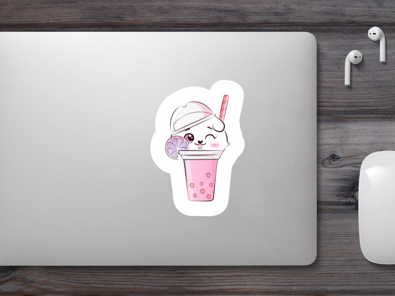 Set 4 bucati, Sticker decorativ, Pisica dulce in pahat de suc, Rezistent la apa, NO10213, 10 cm, Multicolor