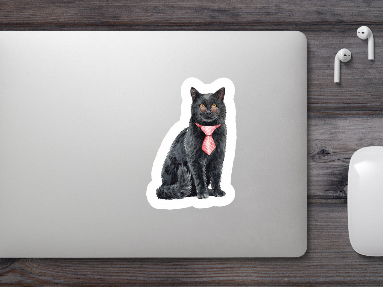 Set 4 bucati, Sticker decorativ, Pisica frumoasa care se uita peste ochelari, Rezistent la apa, NO10219, 10 cm, Multicolor