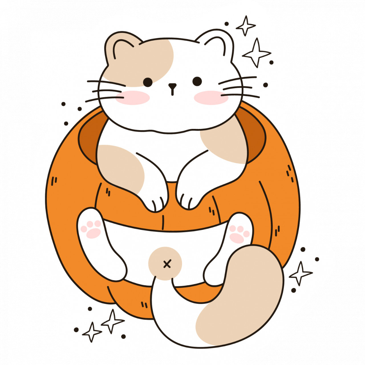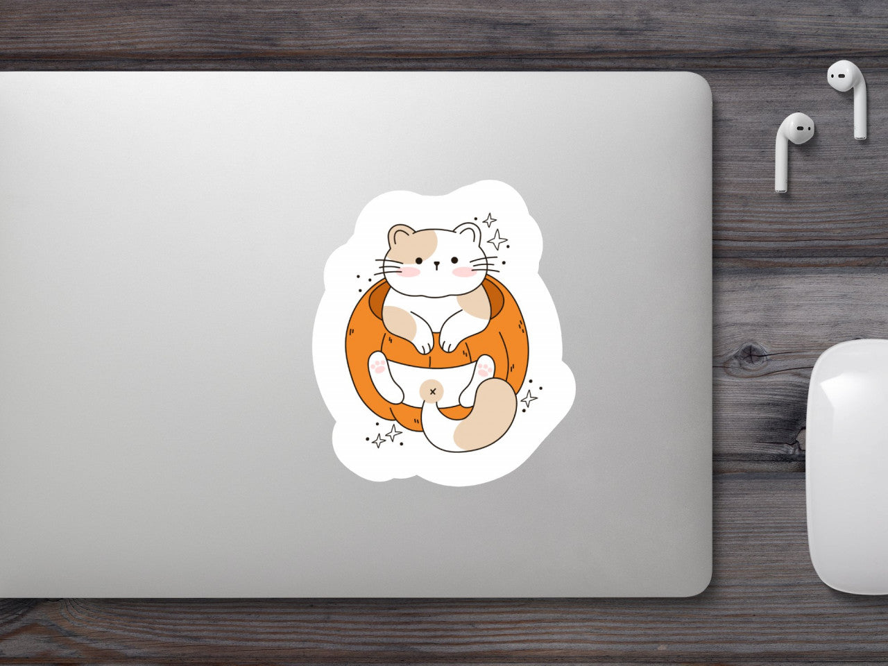 Set 4 bucati, Sticker decorativ, Pisica intr-un dovleac, Rezistent la apa, NO10233, 10 cm, Multicolor