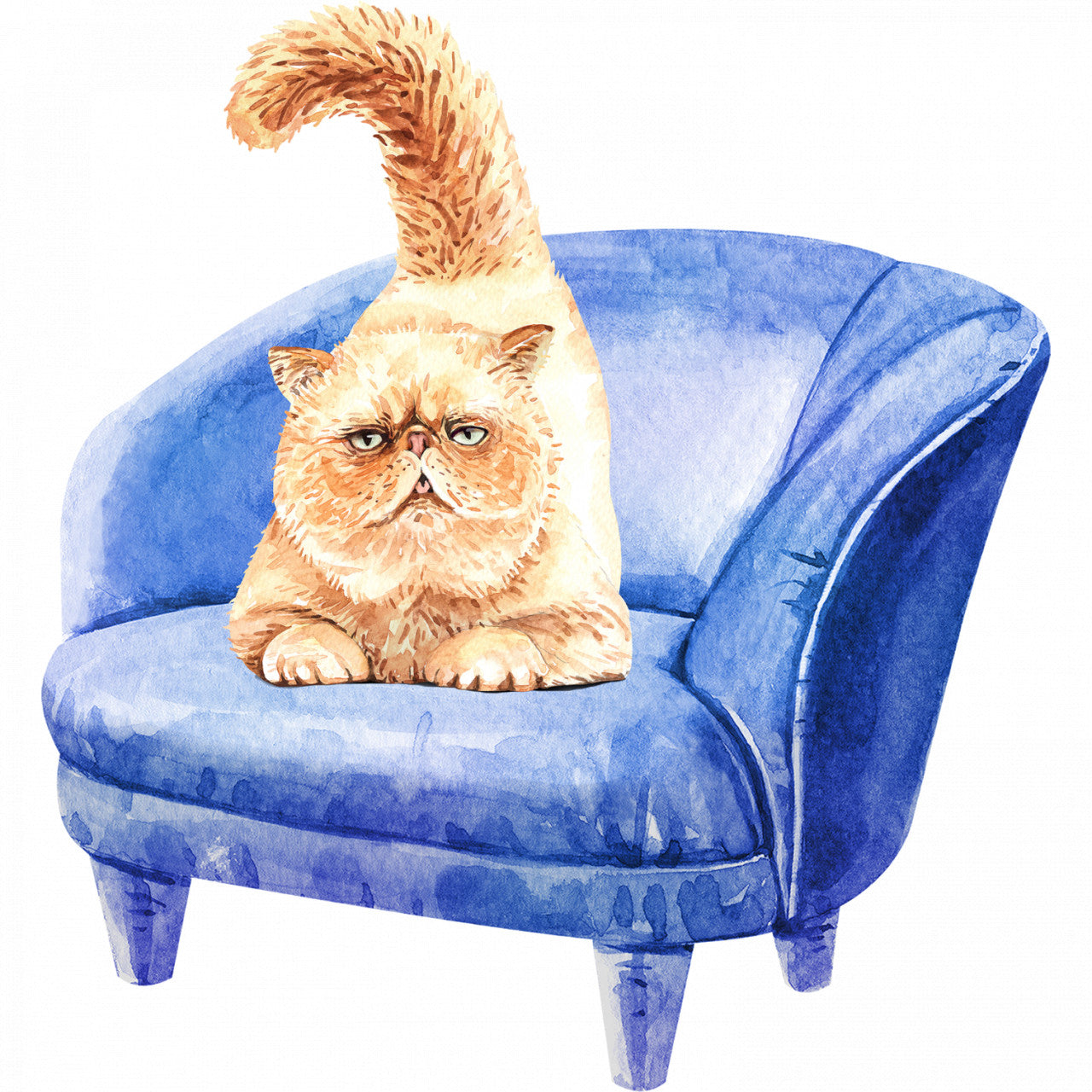Set 4 bucati, Sticker decorativ, Pisica pe fotoliu cu coada in sus, Rezistent la apa, NO10245, 10 cm, Multicolor