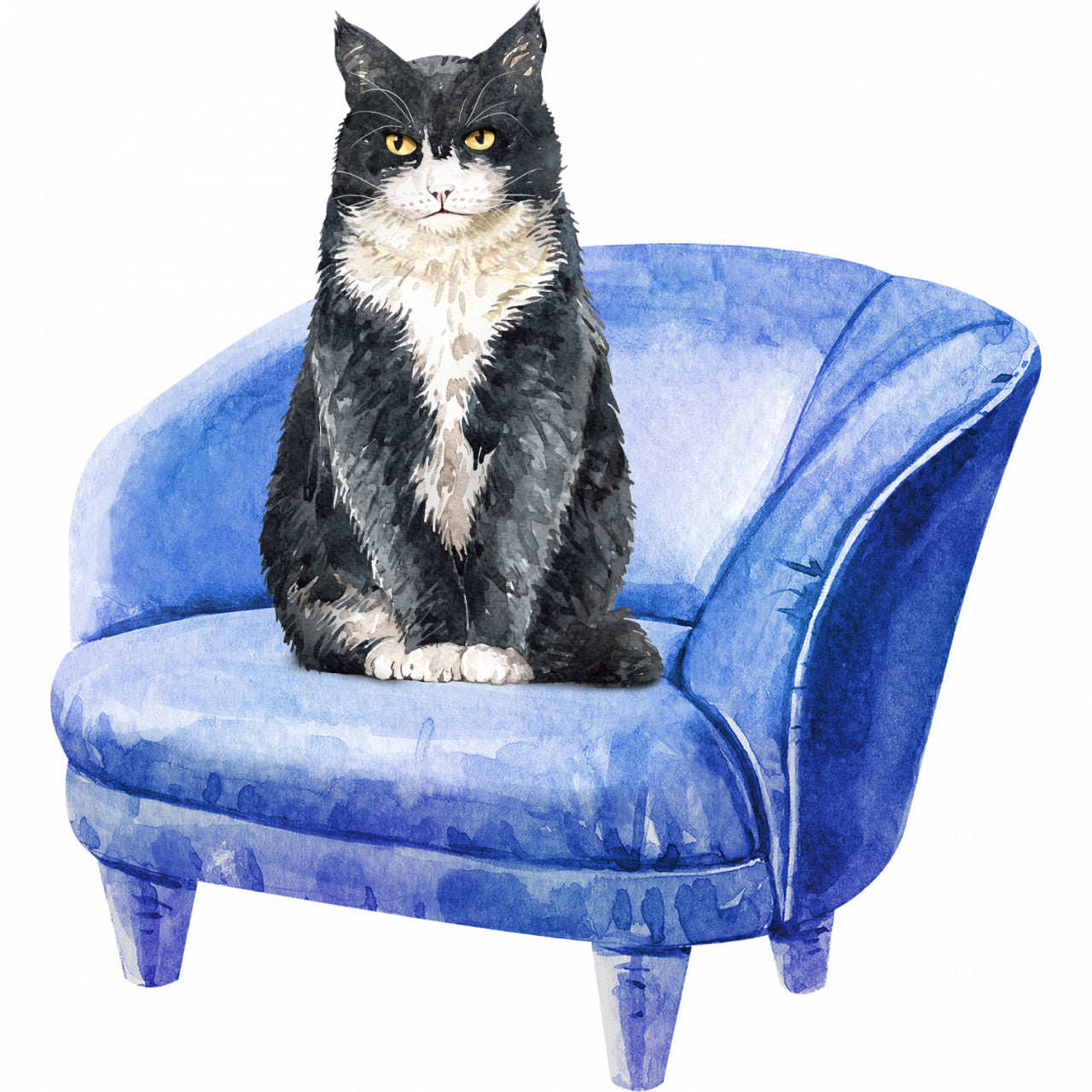 Set 4 bucati, Sticker decorativ, Pisica pe fotoliu, Rezistent la apa, NO10246, 10 cm, Multicolor