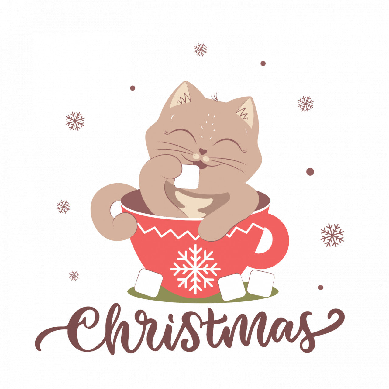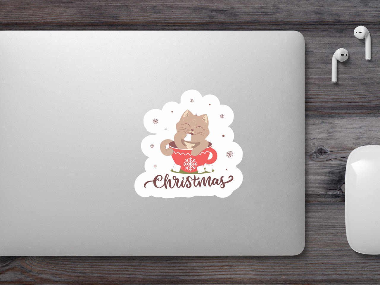 Set 4 bucati, Sticker decorativ, Pisicuta de Craciun, Rezistent la apa, NO10271, 10 cm, Multicolor
