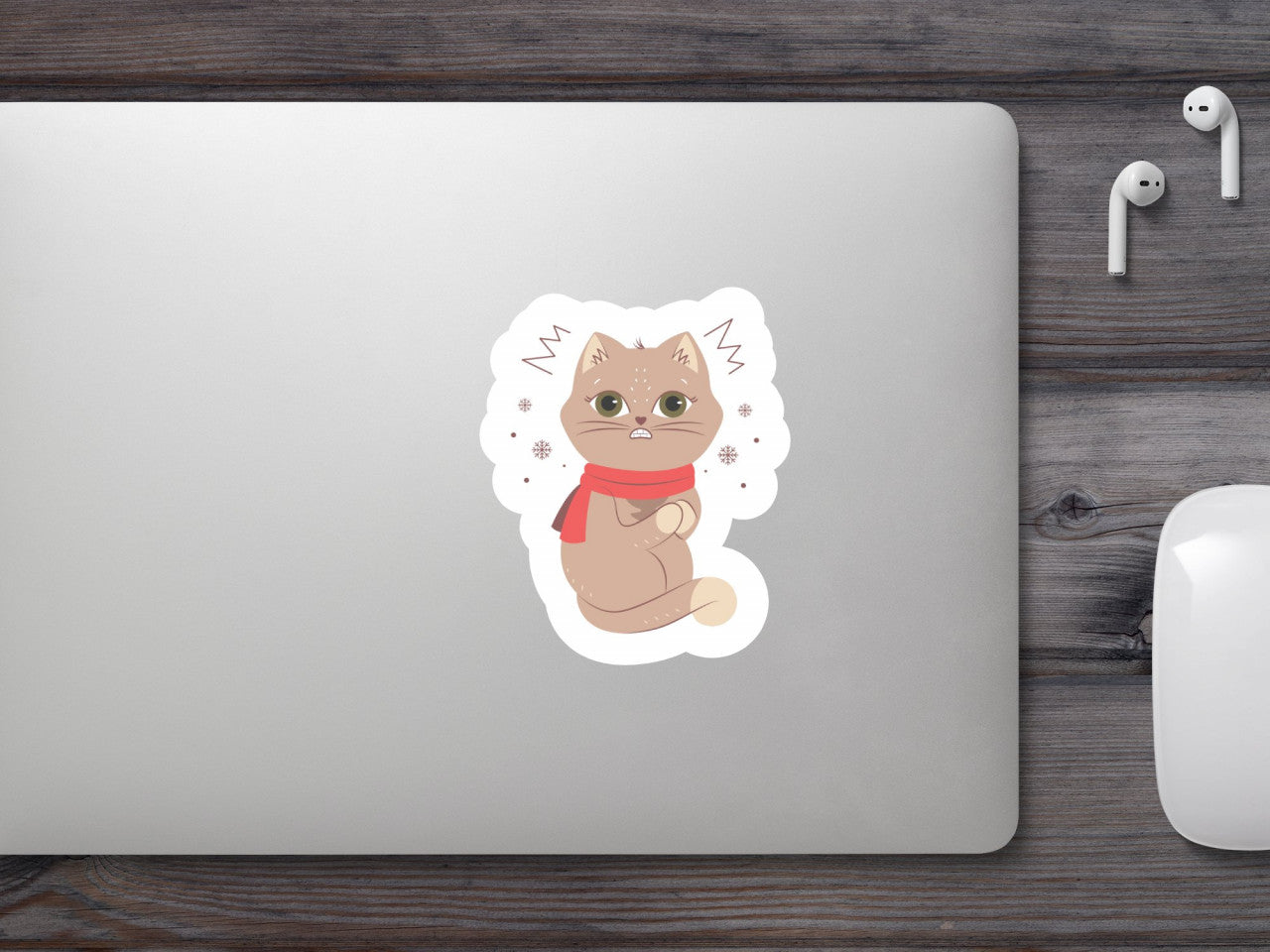 Set 4 bucati, Sticker decorativ, Pisicuta infrigurata, Rezistent la apa, NO7502, 10 cm, Multicolor