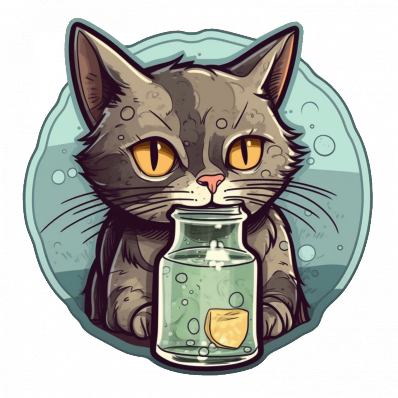 Set 4 bucati, Sticker decorativ, Pisicuta vrajitoare, Rezistent la apa, NO7515, 10 cm, Multicolor