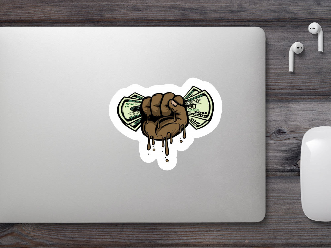 Set 4 bucati, Sticker decorativ, Pumnul cu bani 100 Dolari, Rezistent la apa, NO7745, 10 cm, Multicolor