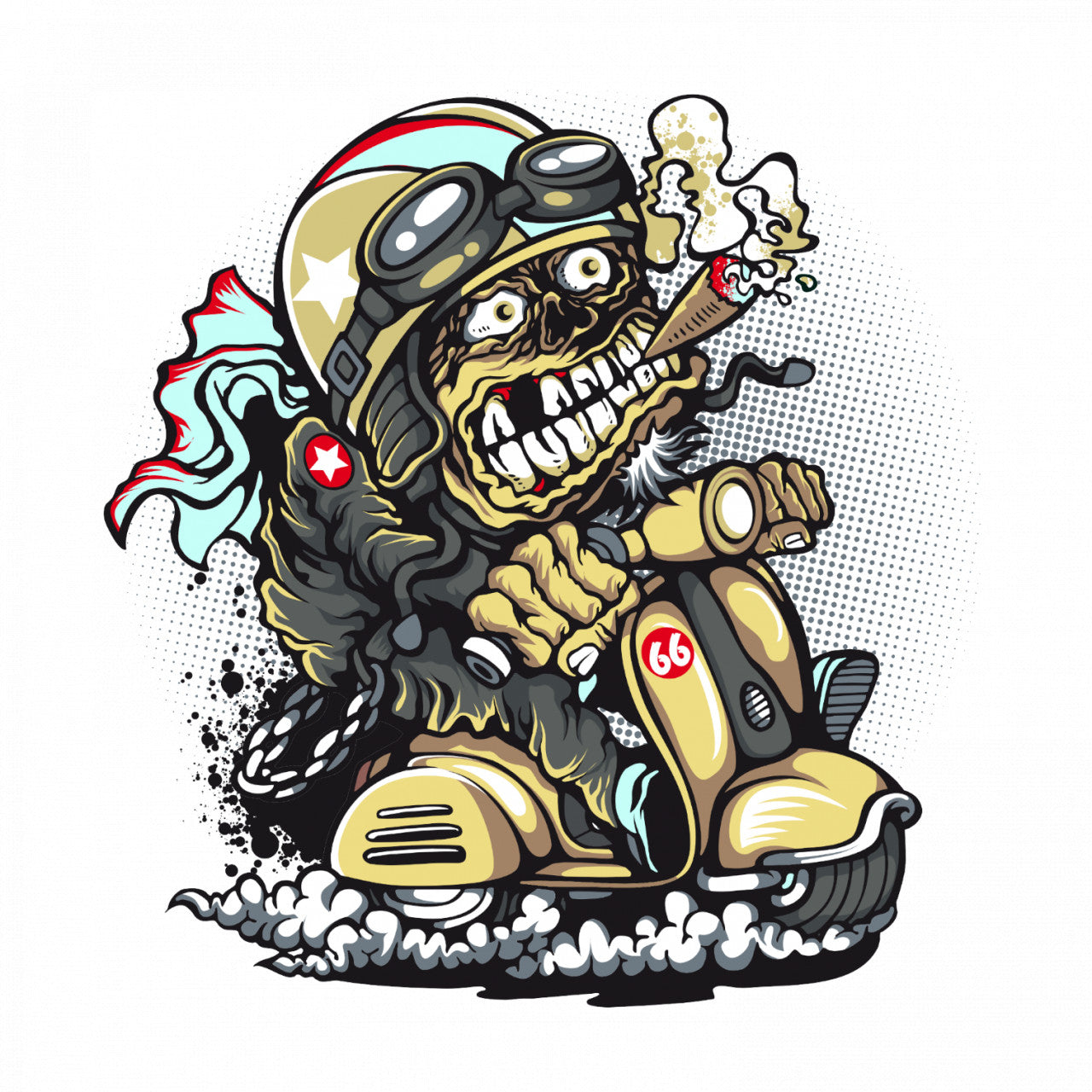Set 4 bucati, Sticker decorativ, Riderul pe Vespa, Rezistent la apa, NO7851, 10 cm, Multicolor