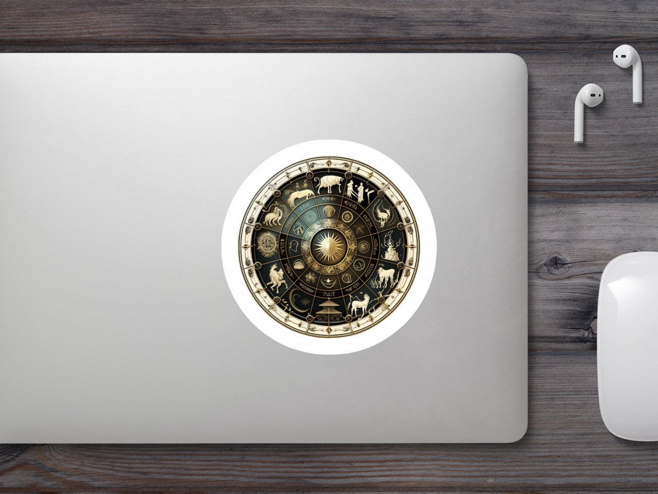 Set 4 bucati, Sticker decorativ, Roata zodiaac cu animale, Rezistent la apa, NO7853, 10 cm, Multicolor