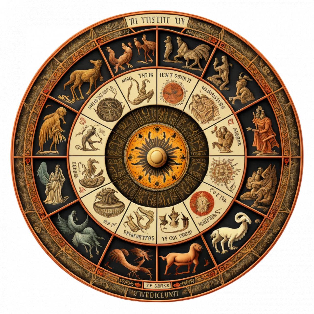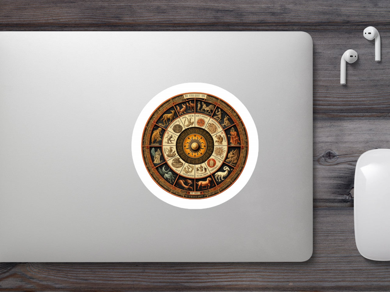 Set 4 bucati, Sticker decorativ, Roata zodiac, Rezistent la apa, NO7854, 10 cm, Multicolor