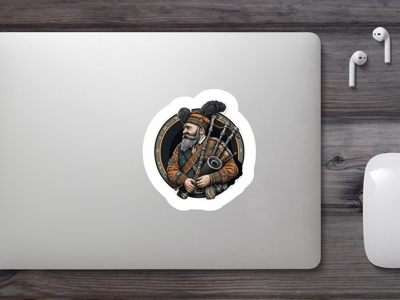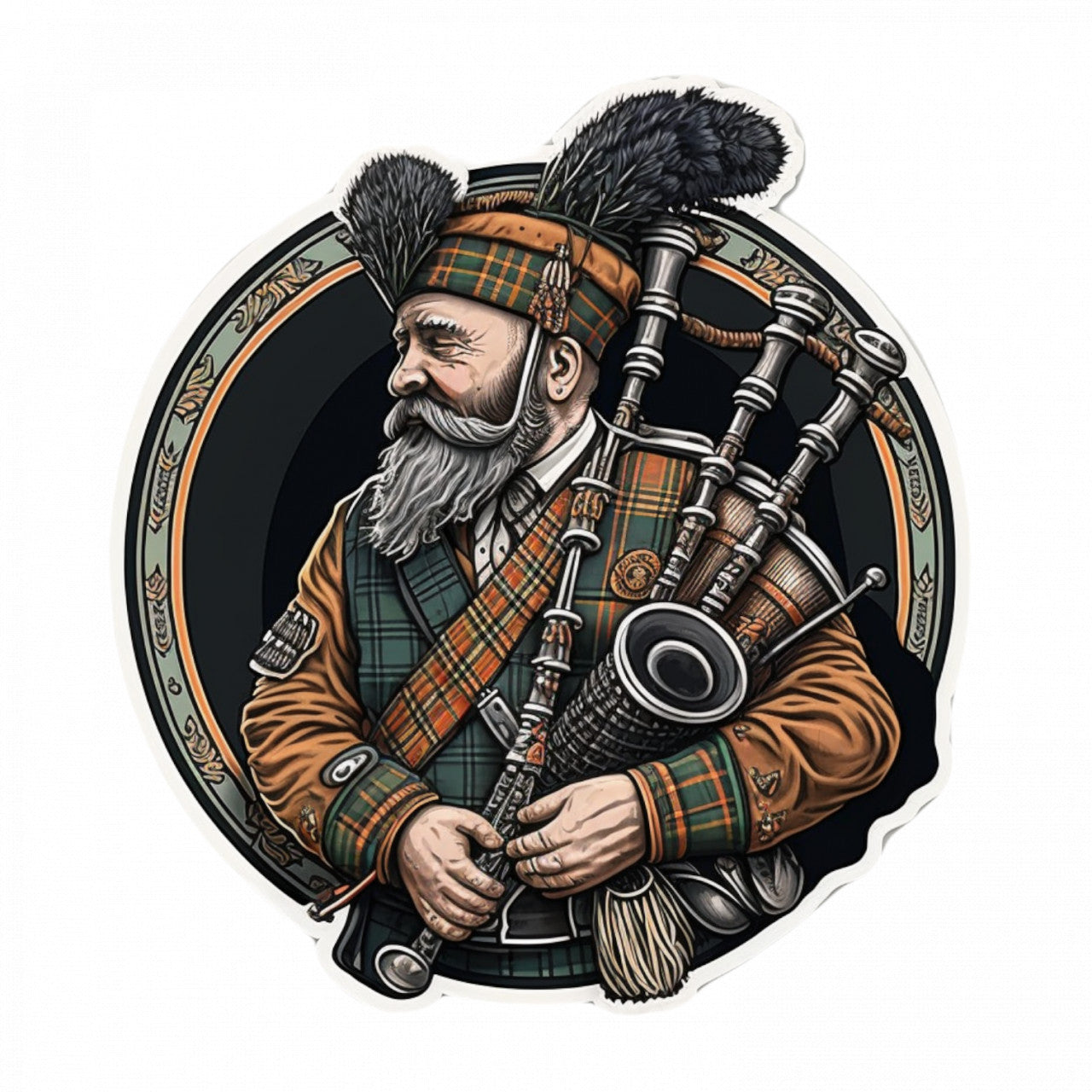 Set 4 bucati, Sticker decorativ, Scotian cu cimpoi, Rezistent la apa, NO8970, 10 cm, Multicolor