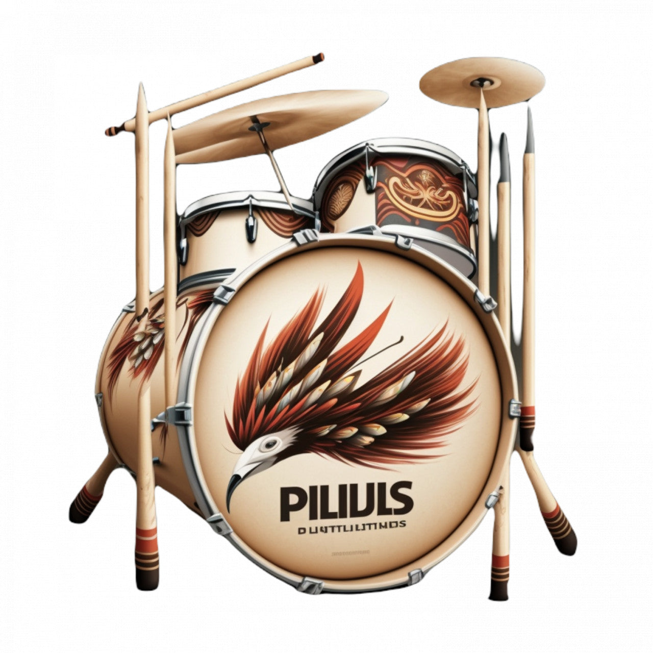 Set 4 bucati, Sticker decorativ, Set de tobe clasice, Rezistent la apa, NO7830, 10 cm, Multicolor