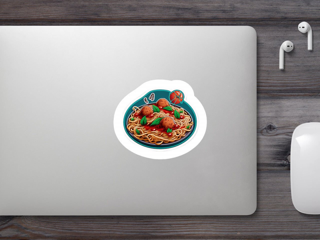 Set 4 bucati, Sticker decorativ, Spaghetti cu chiftele, Rezistent la apa, NO8298, 10 cm, Multicolor