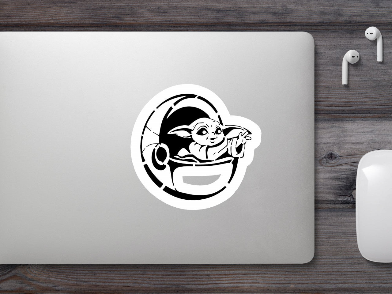 Set 4 bucati, Sticker decorativ, Star wars Yoda copil in patut, Rezistent la apa, NO8430, 10 cm, Multicolor