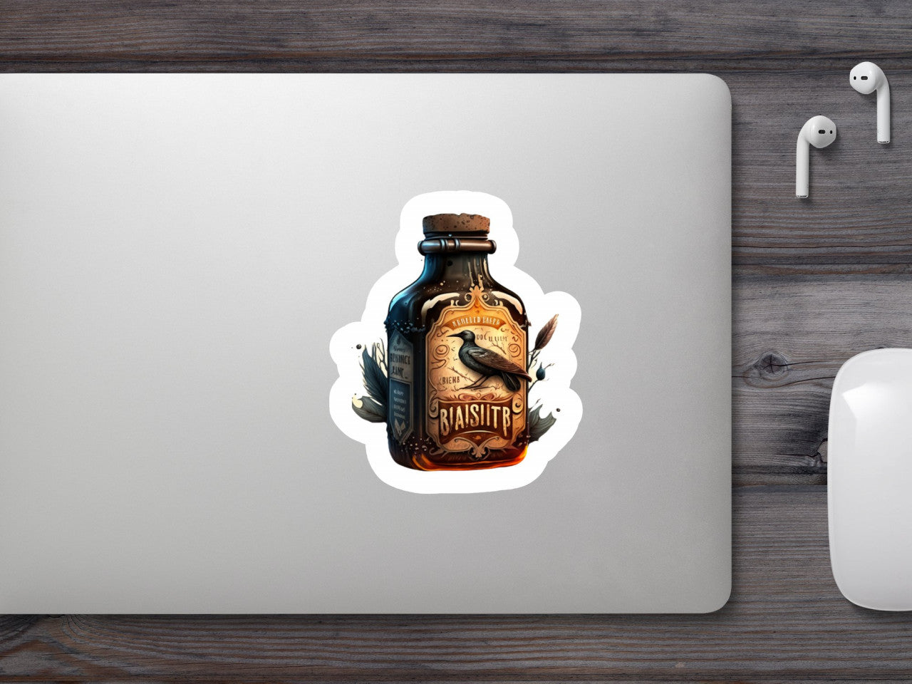 Set 4 bucati, Sticker decorativ, Sticla de cerneala retro, Rezistent la apa, NO7832, 10 cm, Multicolor