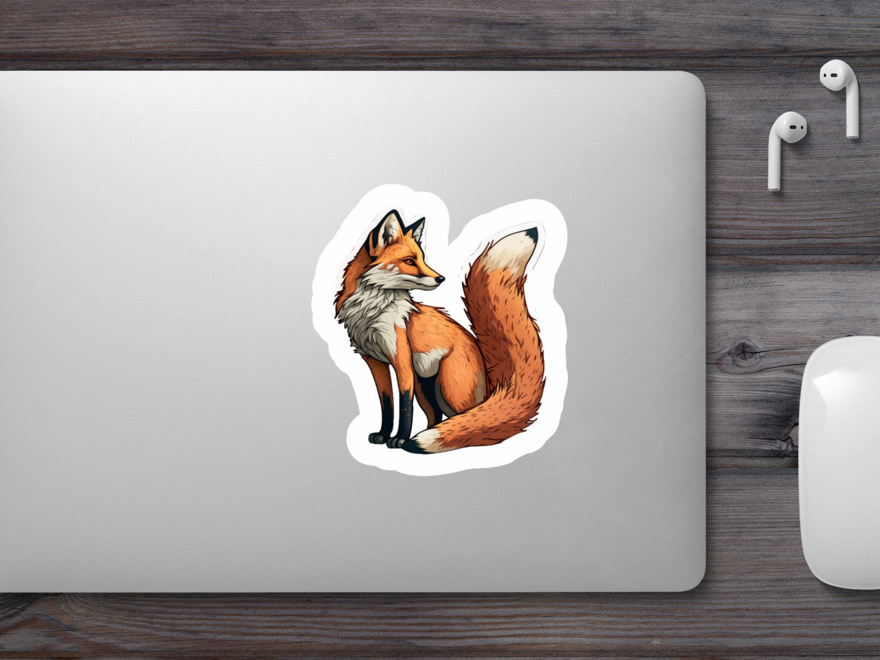 Set 4 bucati, Sticker decorativ, Vulpe cu coada stufoasa, Rezistent la apa, NO8357, 10 cm, Multicolor