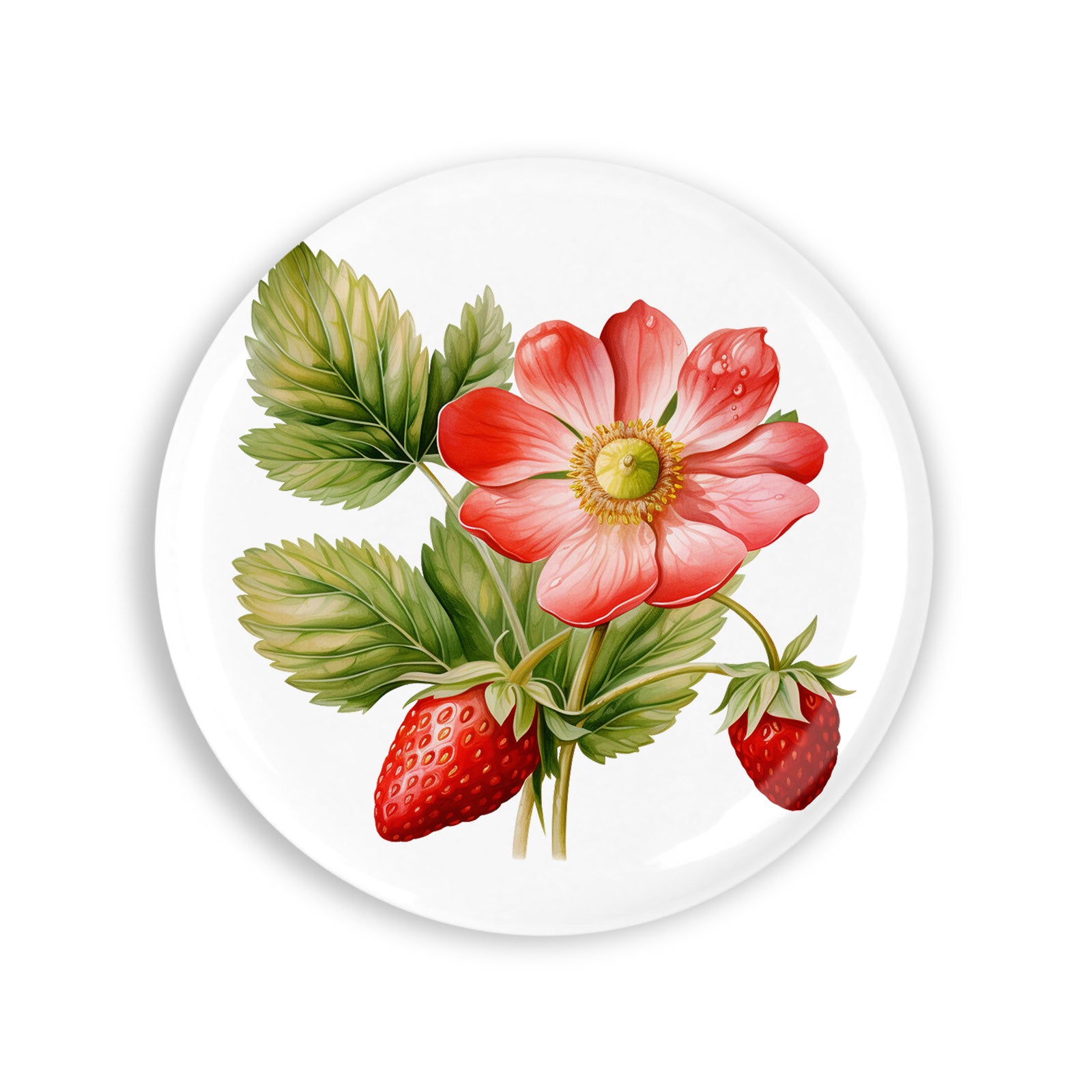 Set 4 insigne, Capsune si floare rosie, NO6503, Metal, 44 mm, Multicolor