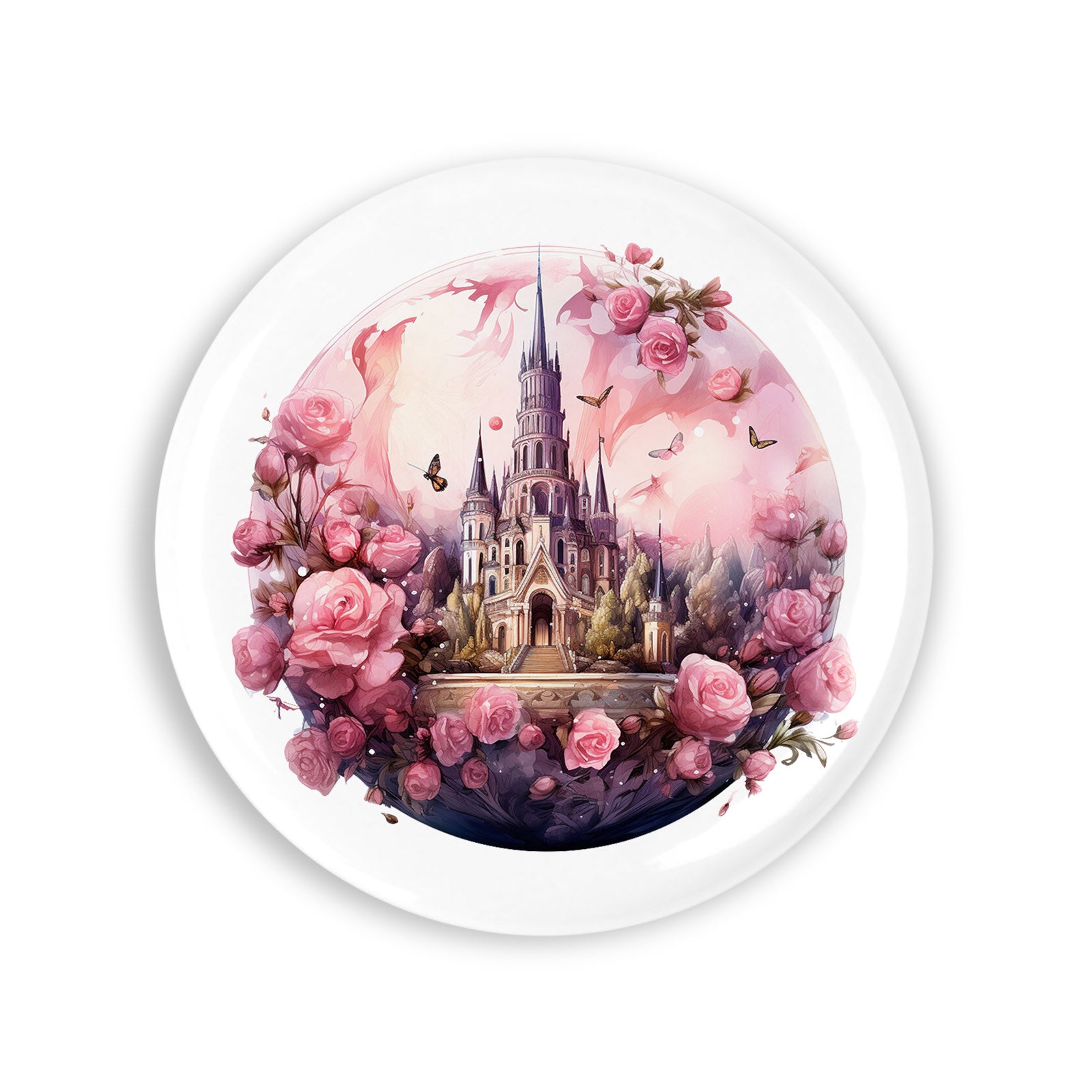 Set 4 insigne, Castelul cu flori si fluturi, NO2922, Metal, 44 mm, Multicolor