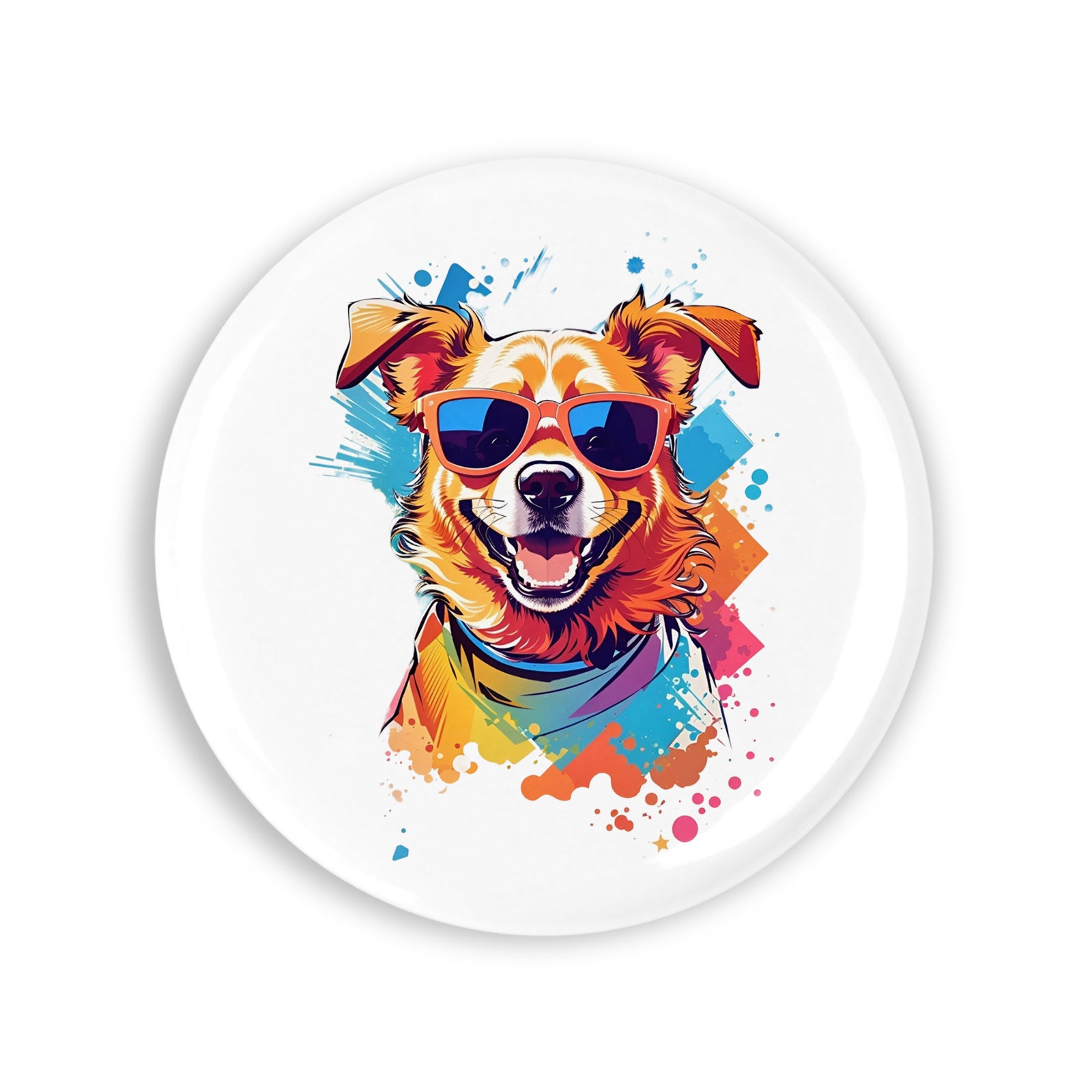 Set 4 insigne, Catelul sic cu ochelari, NO6794, Metal, 44 mm, Multicolor