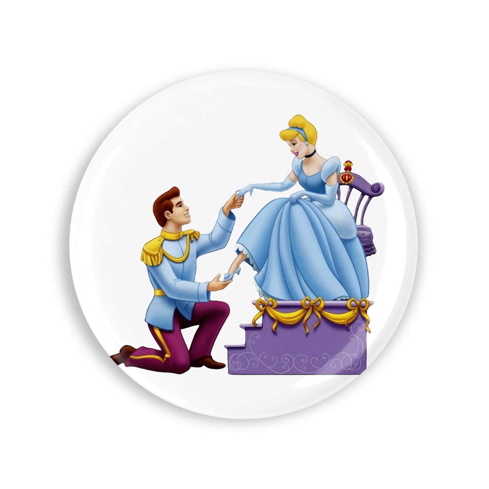 Set 4 insigne, Cenusareasa si printul frumos incearca pantoful, NO9615, Metal, 44 mm, Multicolor