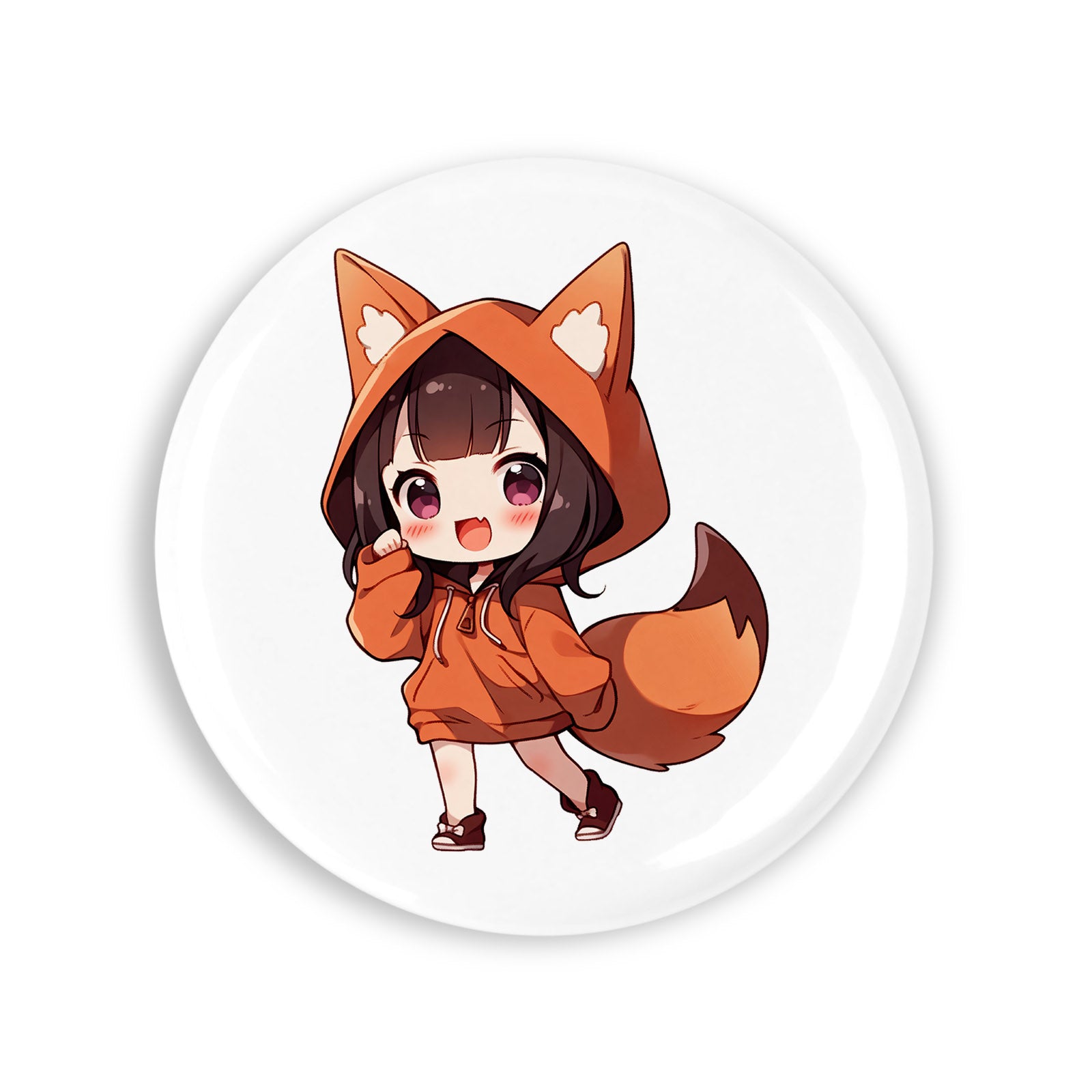 Set 4 insigne, Chibi Girl Fox, NO2394, Metal, 44 mm, Multicolor