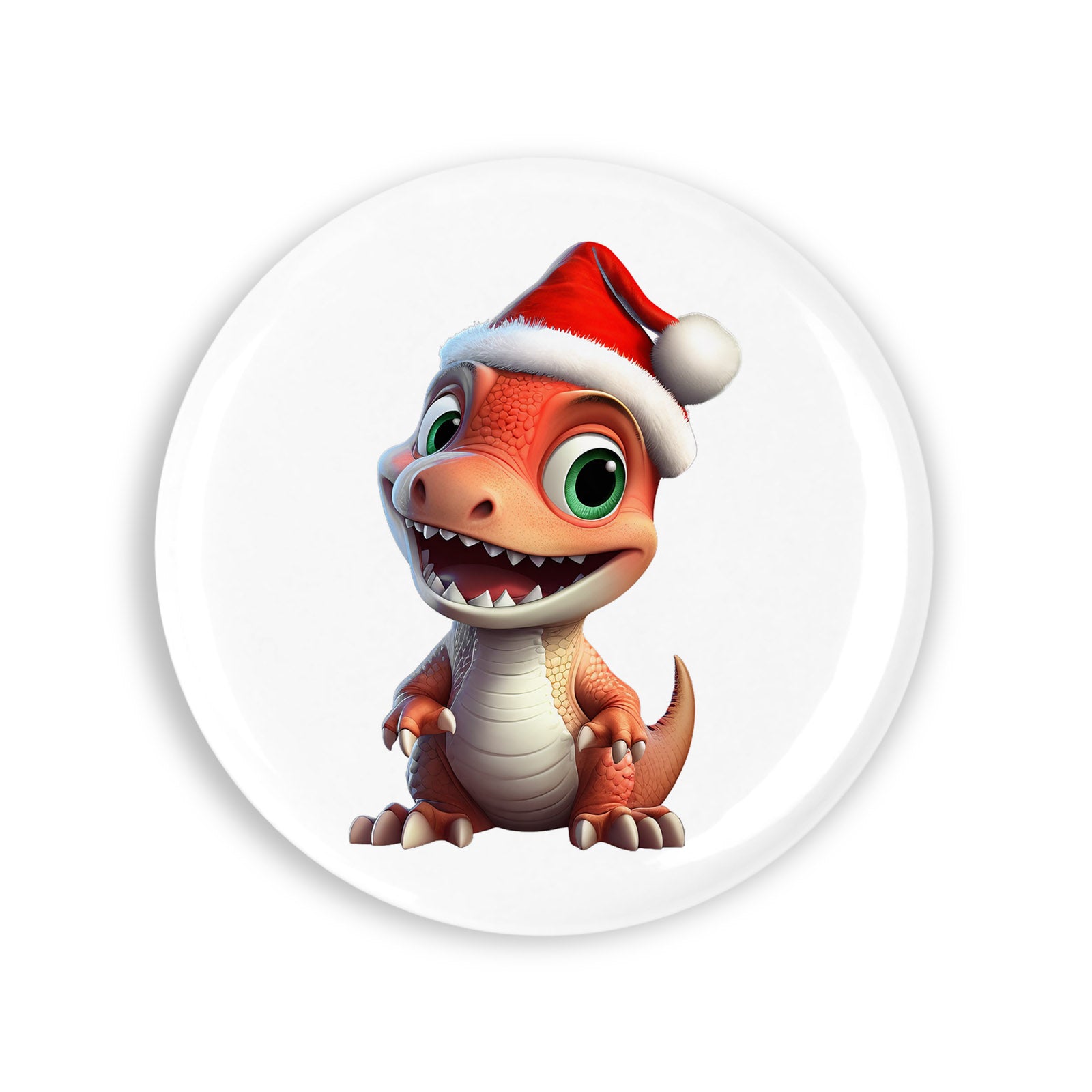 Set 4 insigne, Christmas Dinosaur Fericitul, NO5713, Metal, 44 mm, Multicolor