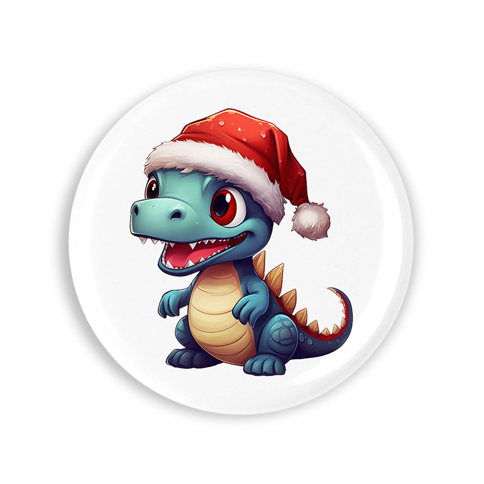 Set 4 insigne, Christmas Dinosaur Piele albastra, NO6244, Metal, 44 mm, Multicolor
