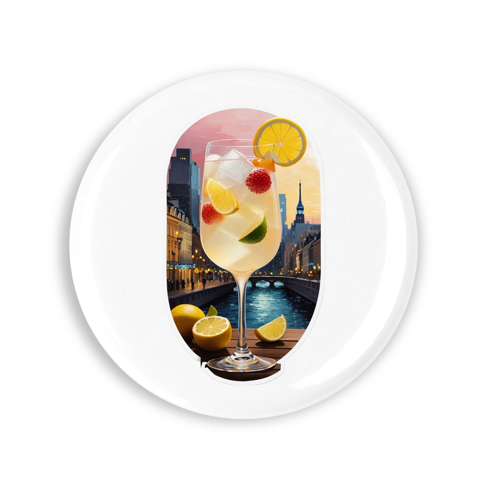 Set 4 insigne, Cocktail frantuzesc cu felie de lamaie, NO8198, Metal, 44 mm, Multicolor