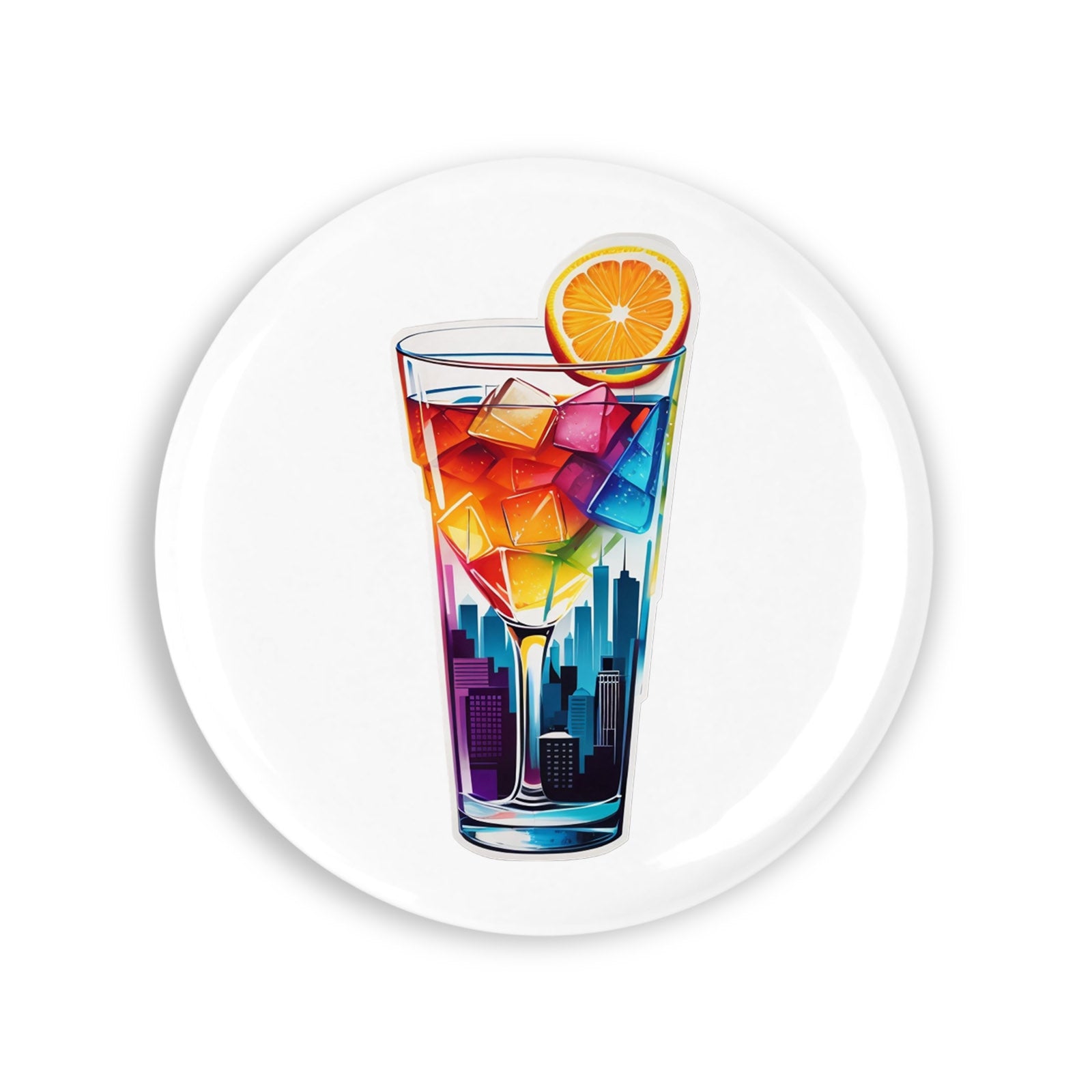 Set 4 insigne, Cocktail Manhattan cu gheata, NO8511, Metal, 44 mm, Multicolor