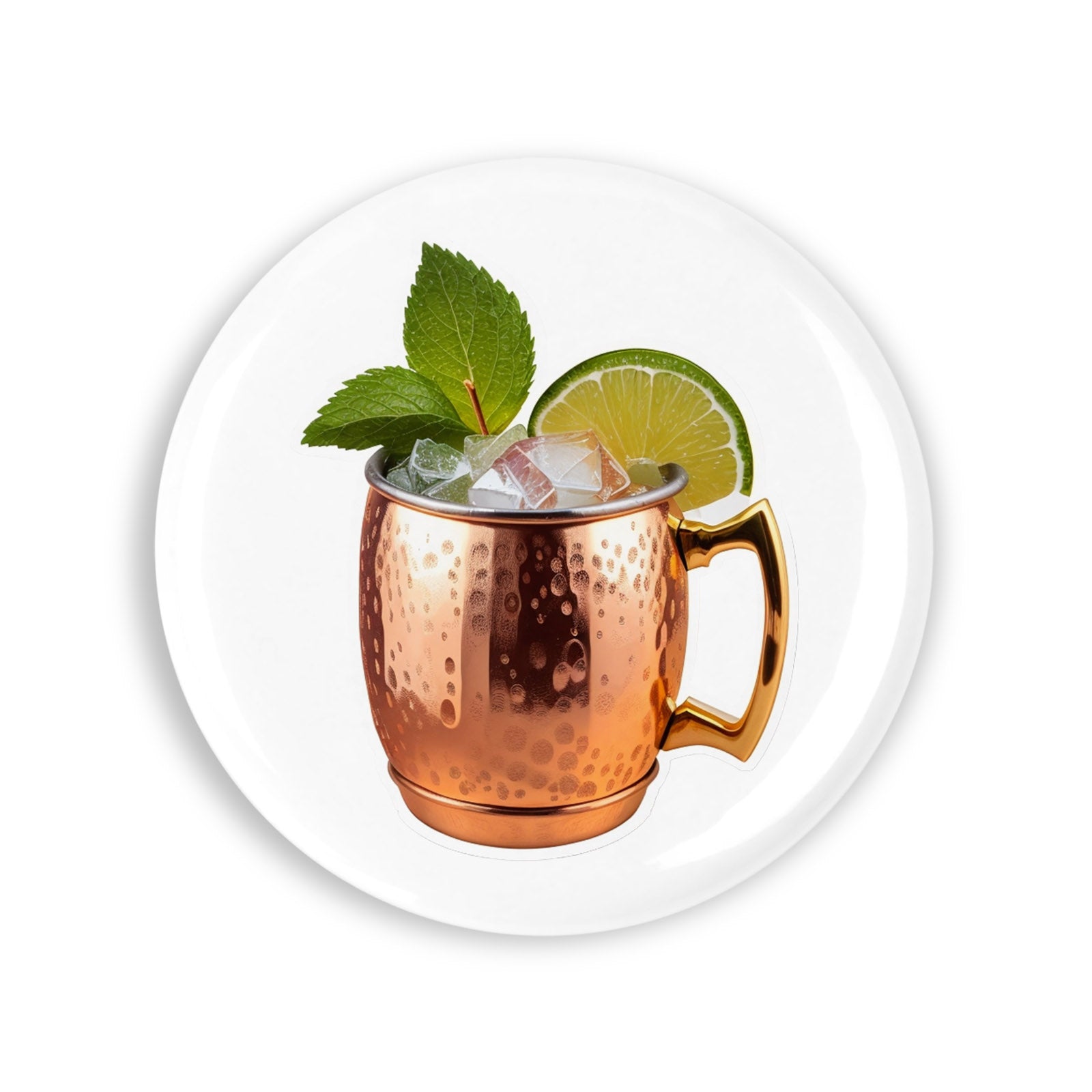 Set 4 insigne, Cocktail Moscow Mule cu lime si menta in cana de cupru, NO8574, Metal, 44 mm, Multicolor