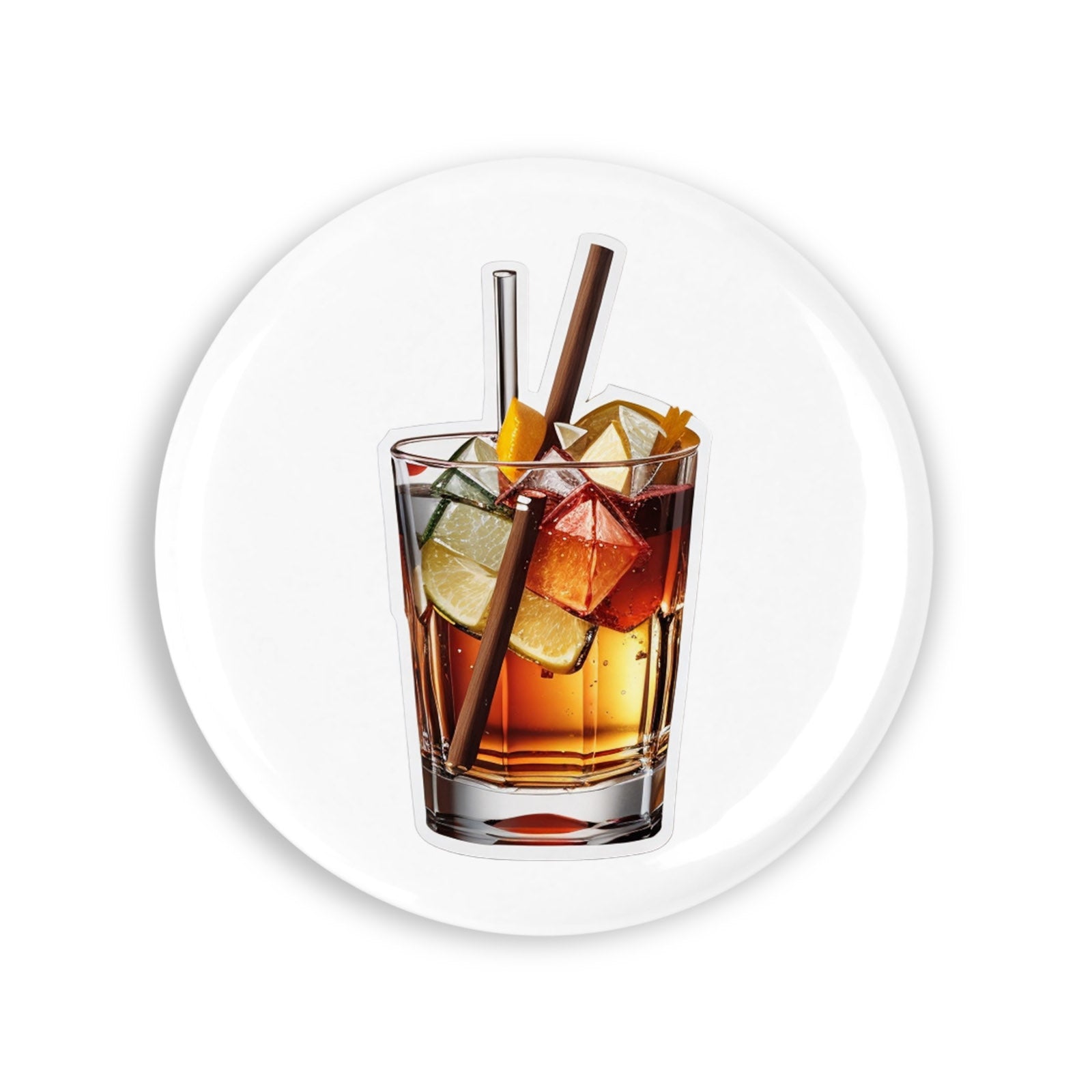 Set 4 insigne, Coctail Rusty nail cu gheata, NO8824, Metal, 44 mm, Multicolor