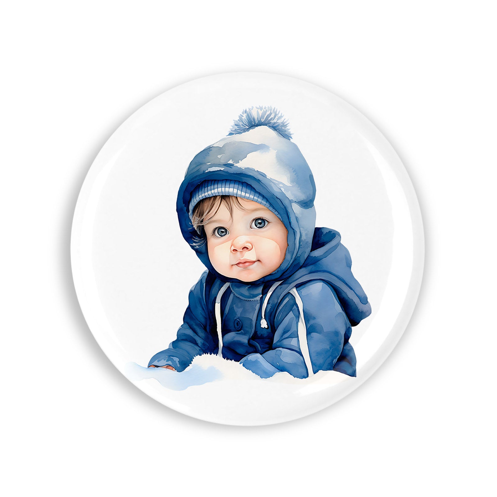 Set 4 insigne, Copil cu caciula si hanorac albastru, NO3933, Metal, 44 mm, Multicolor