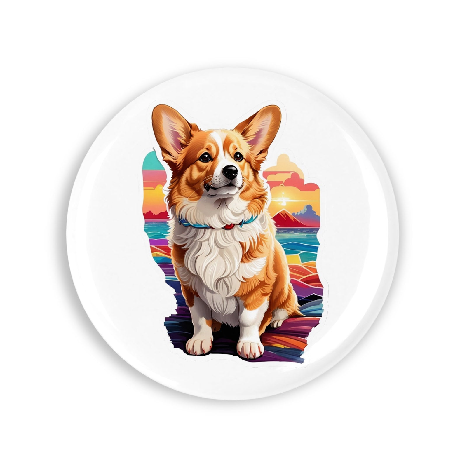 Set 4 insigne, Corgi galez Pembroke cu zgarda, NO8684, Metal, 44 mm, Multicolor