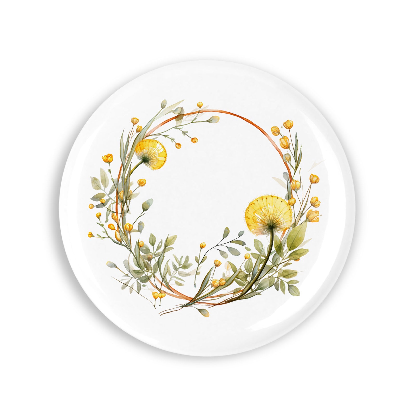 Set 4 insigne, Coronita cu papadii si frunze verzi, NO5612, Metal, 44 mm, Multicolor