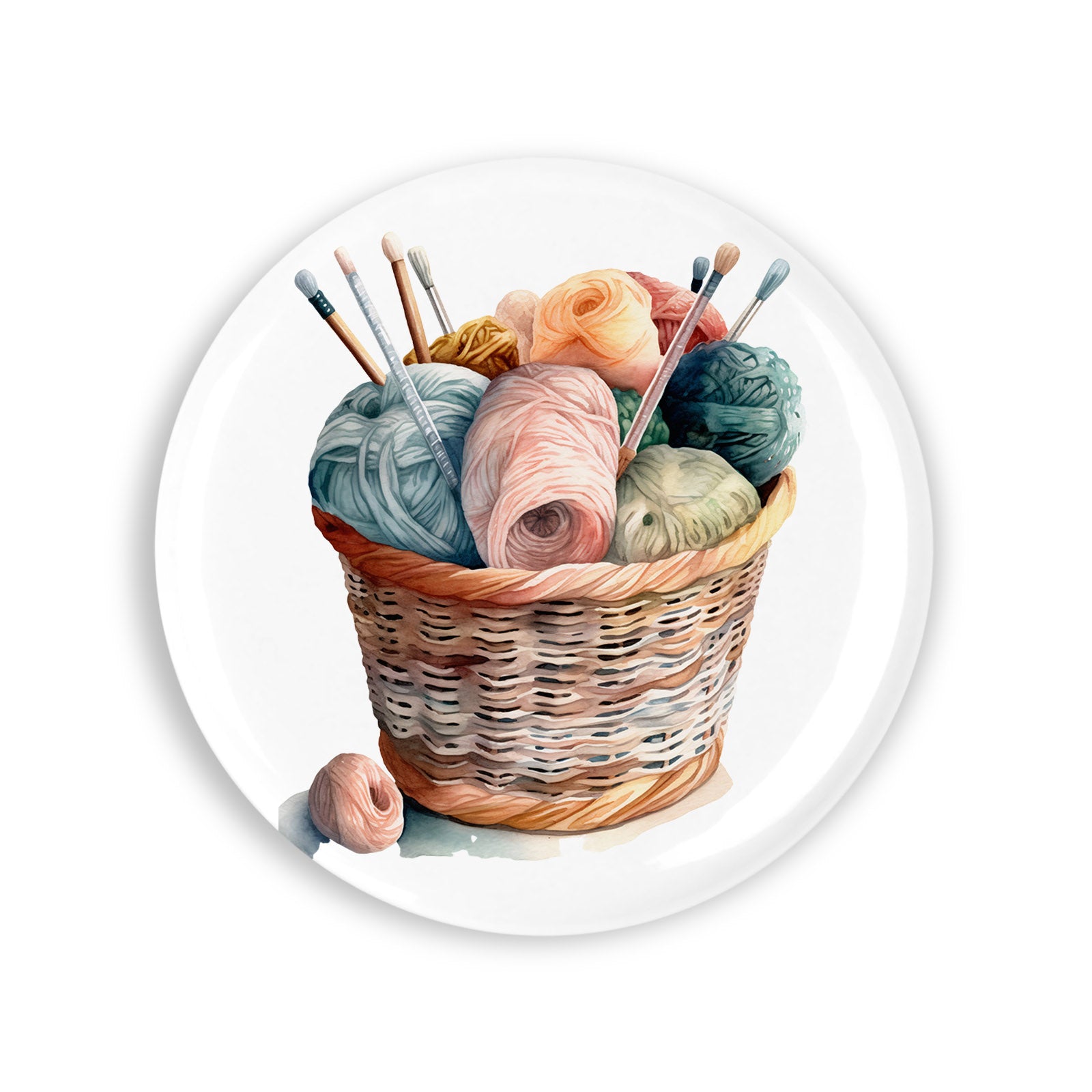 Set 4 insigne, Cosul pentru tricotat Amalia, NO2679, Metal, 44 mm, Multicolor
