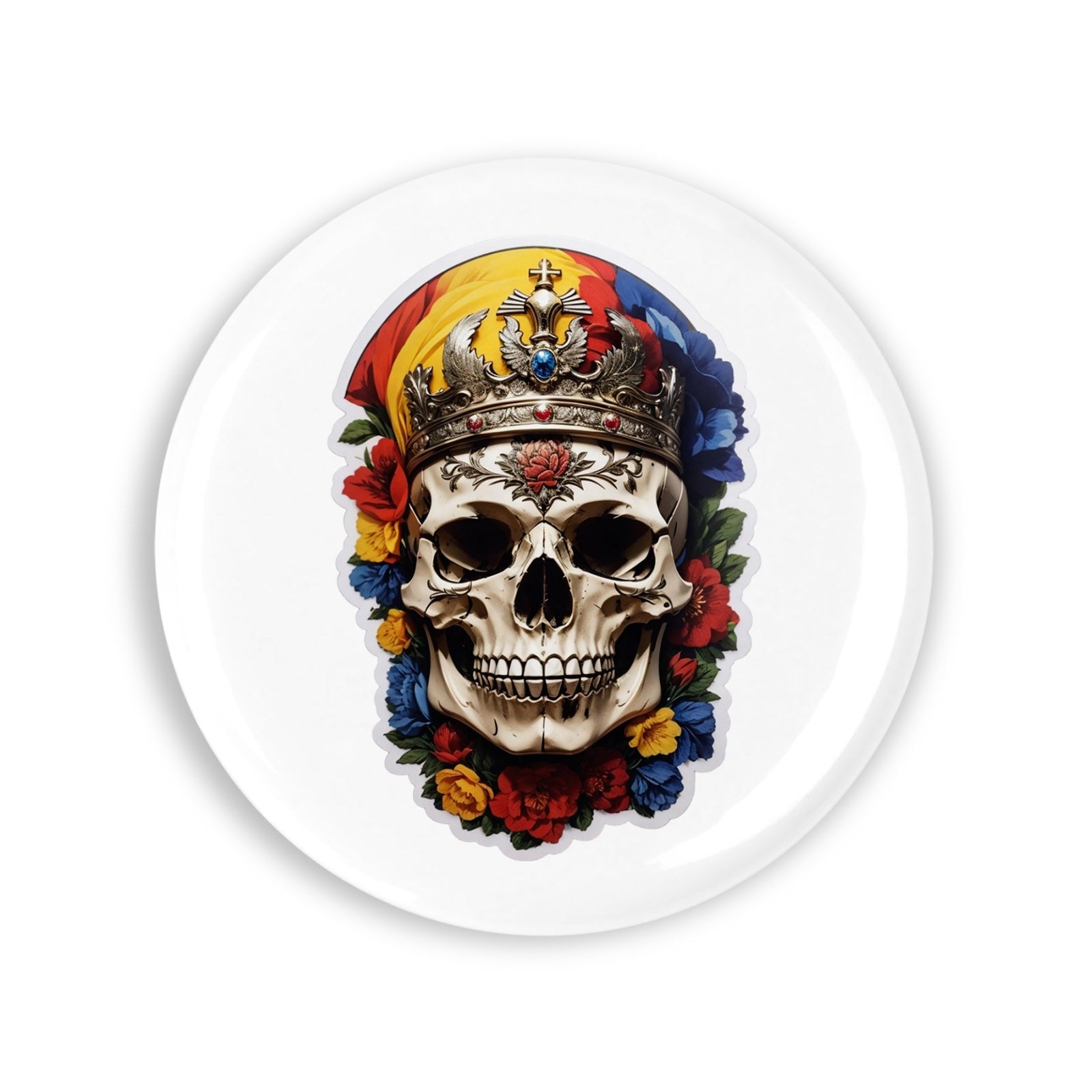 Set 4 insigne, Craniu cu coroana, NO7359, Metal, 44 mm, Multicolor