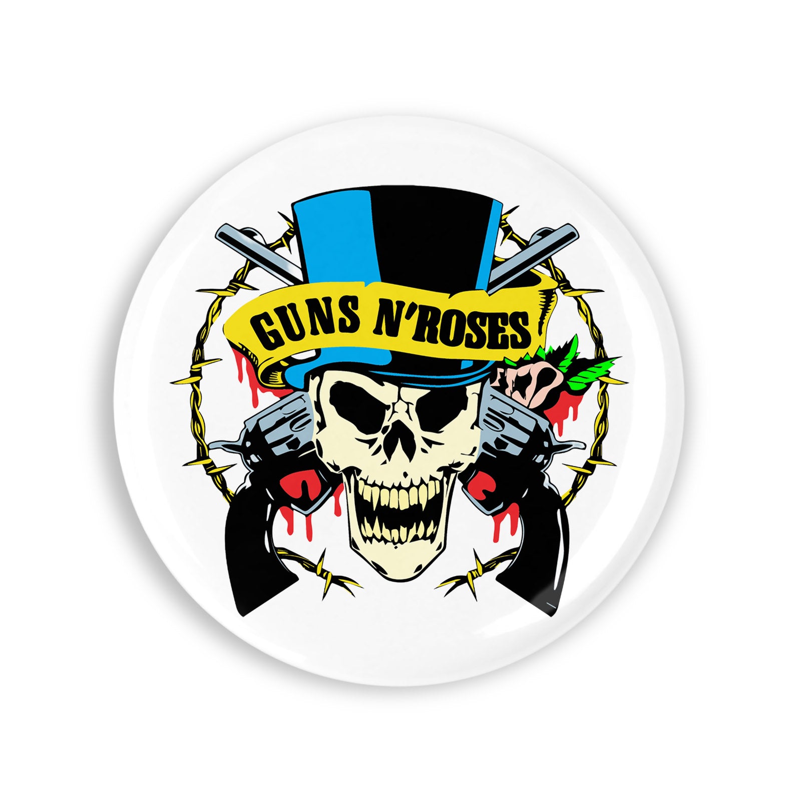 Set 4 insigne, Craniu cu pistoale Guns N' Roses, NO9745, Metal, 44 mm, Multicolor