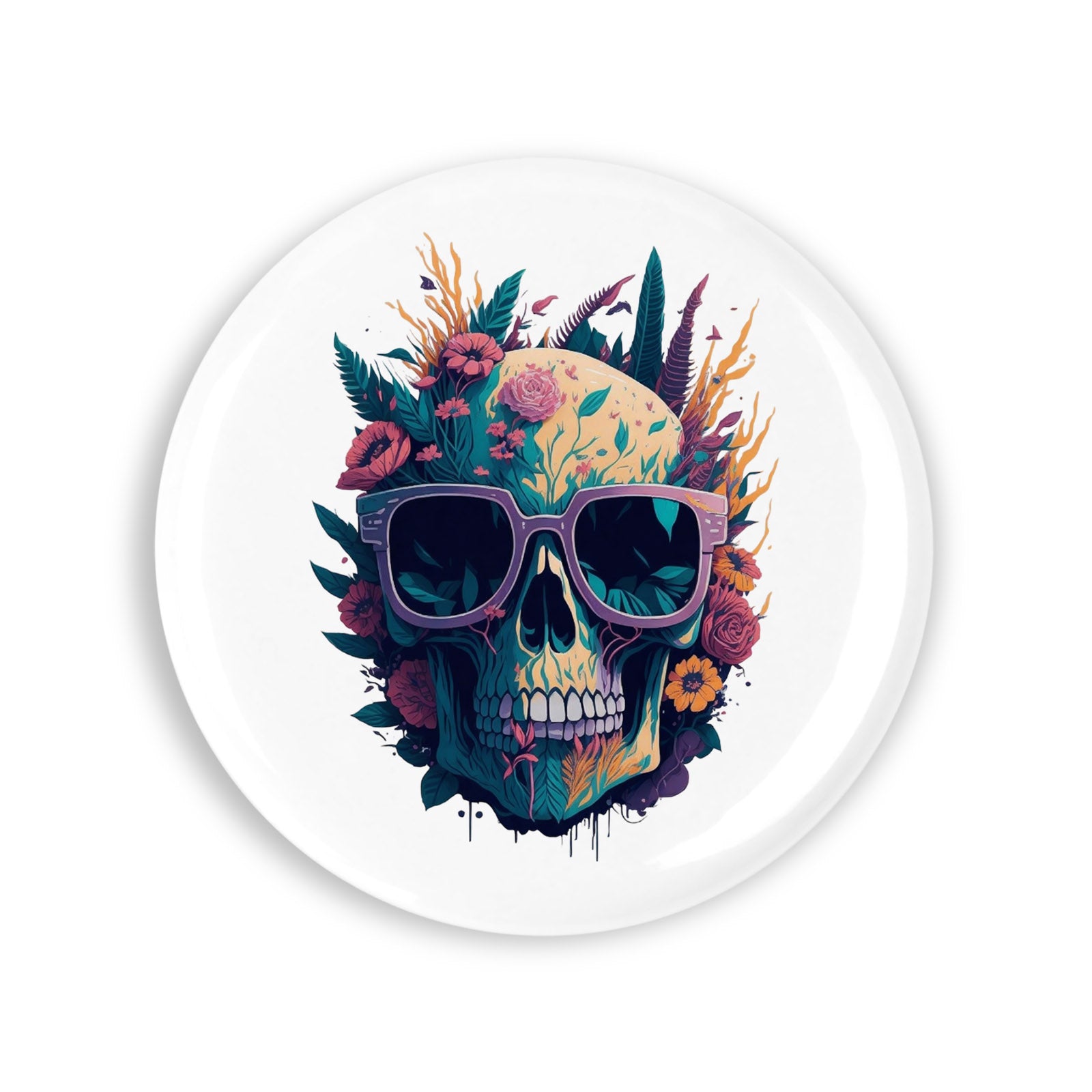Set 4 insigne, Craniul cu flori, NO6649, Metal, 44 mm, Multicolor