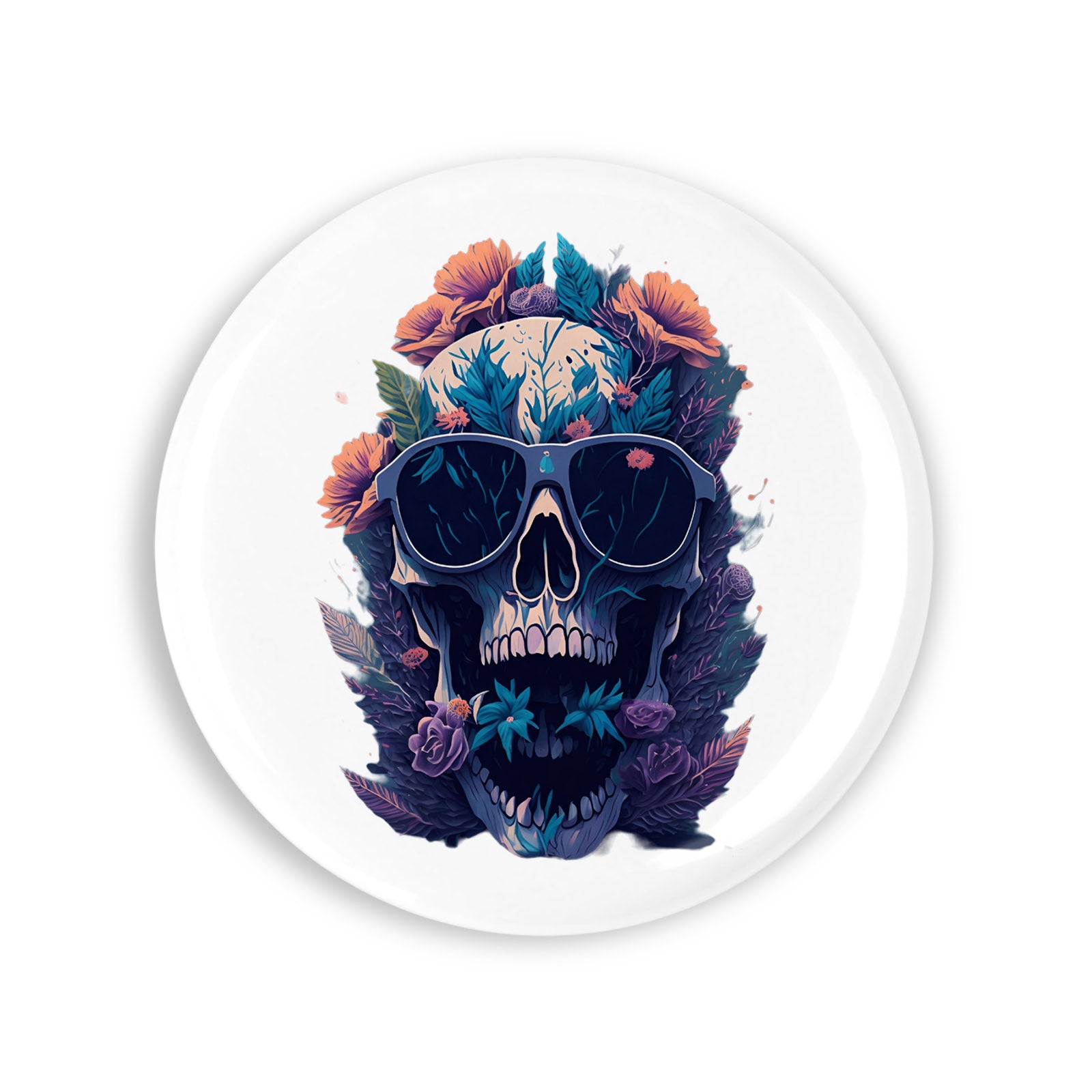 Set 4 insigne, Craniul cu flori si ochelari de soare, NO6652, Metal, 44 mm, Multicolor