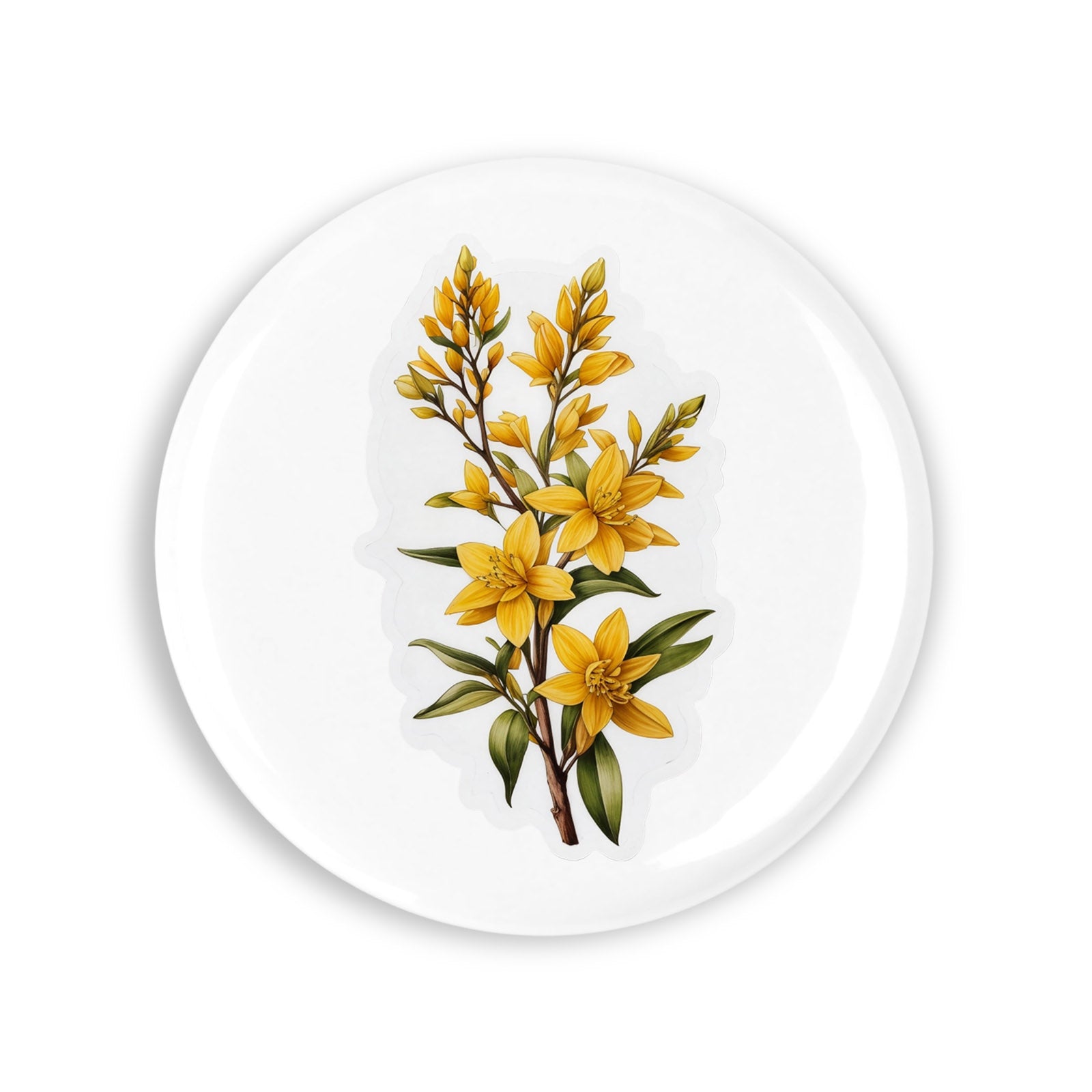 Set 4 insigne, Creanga cu flori de Forsitia, NO8182, Metal, 44 mm, Multicolor