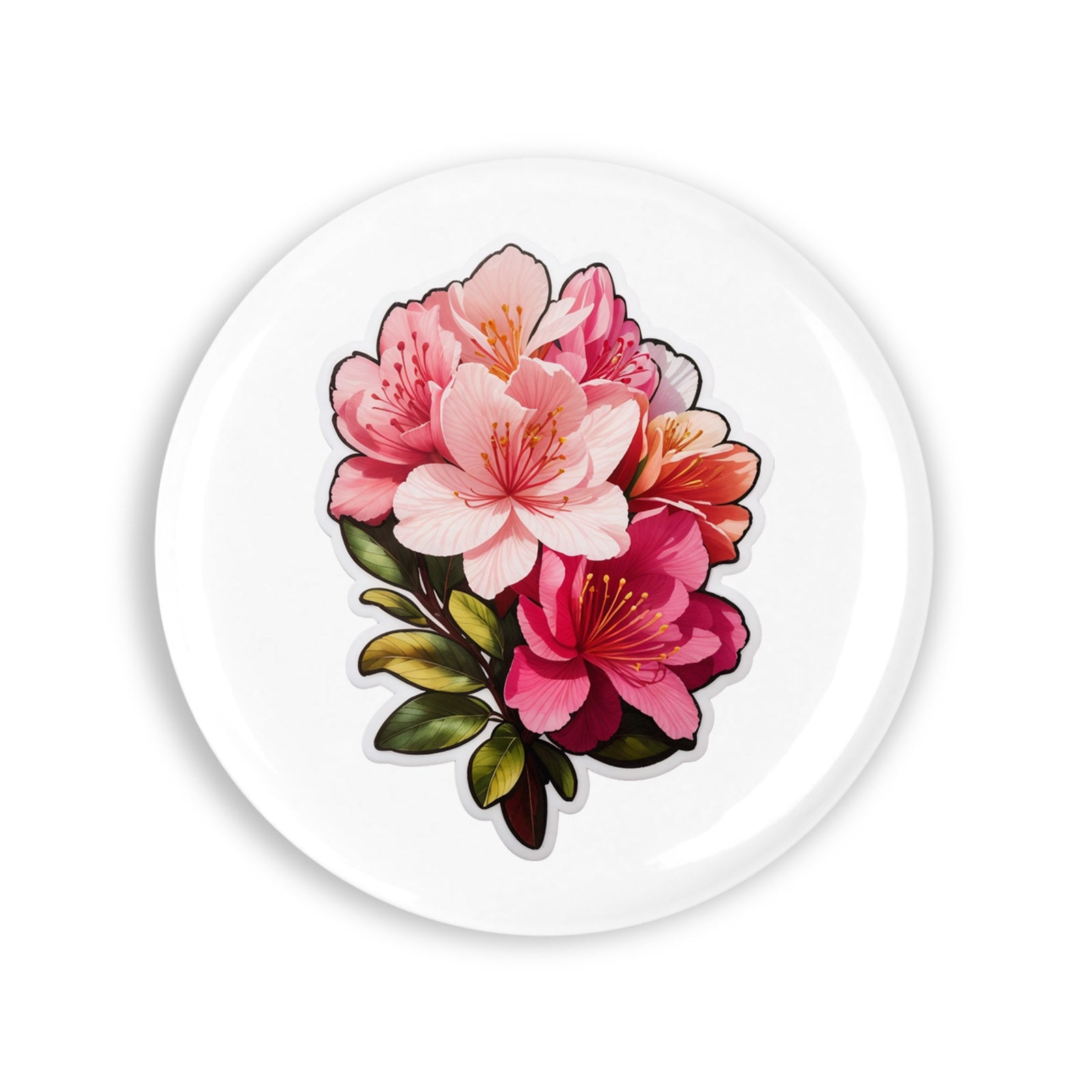Set 4 insigne, Creanga de flori azalea inflorite, NO7729, Metal, 44 mm, Multicolor